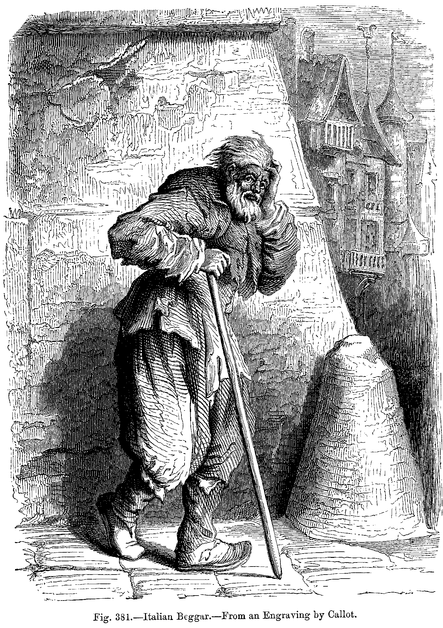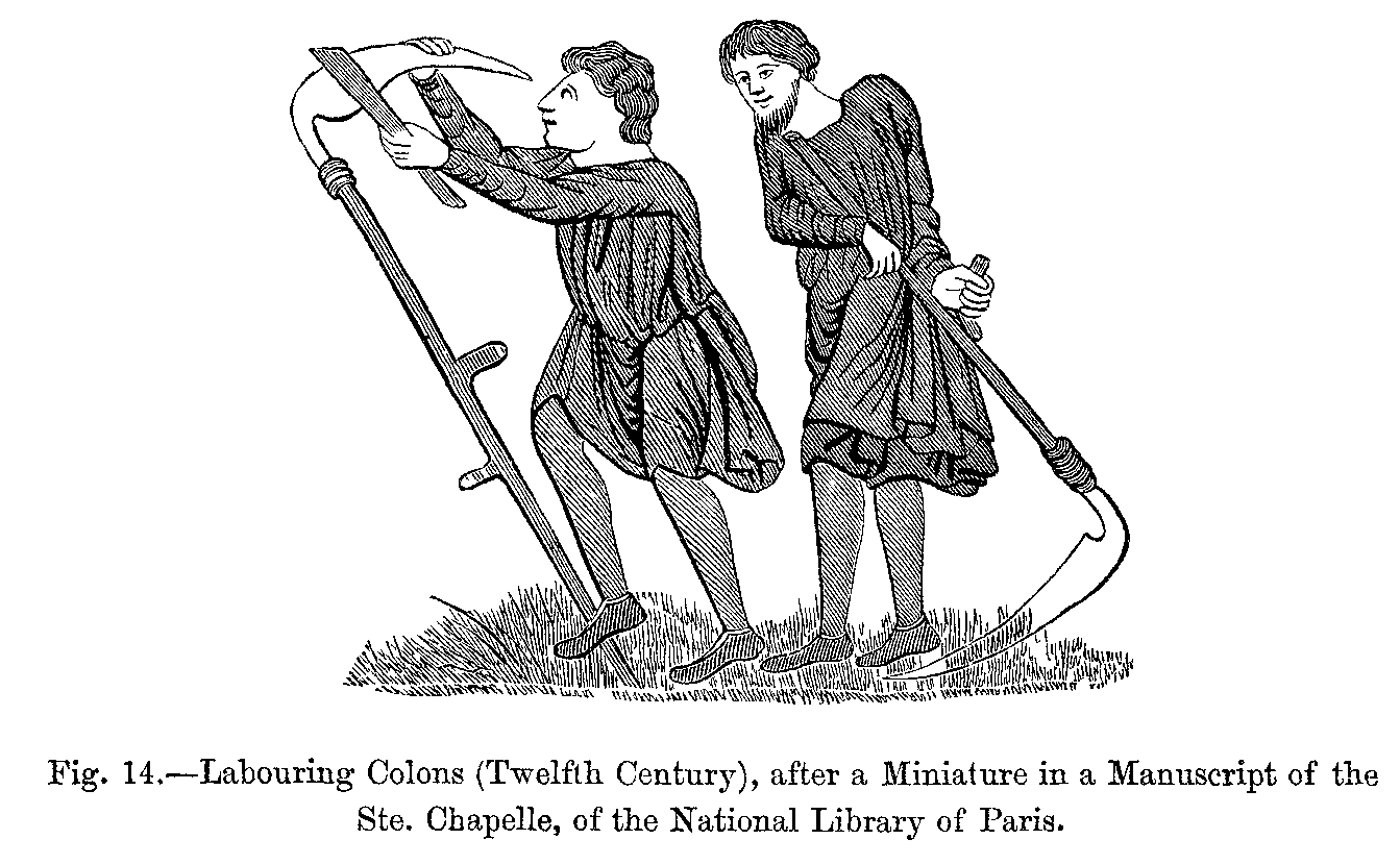 Fig. 417.--Costumes of the Common People in the Fourteenth Century: Italian Gardener and Woodman.--From two Engravings in the Bonnart Collection.