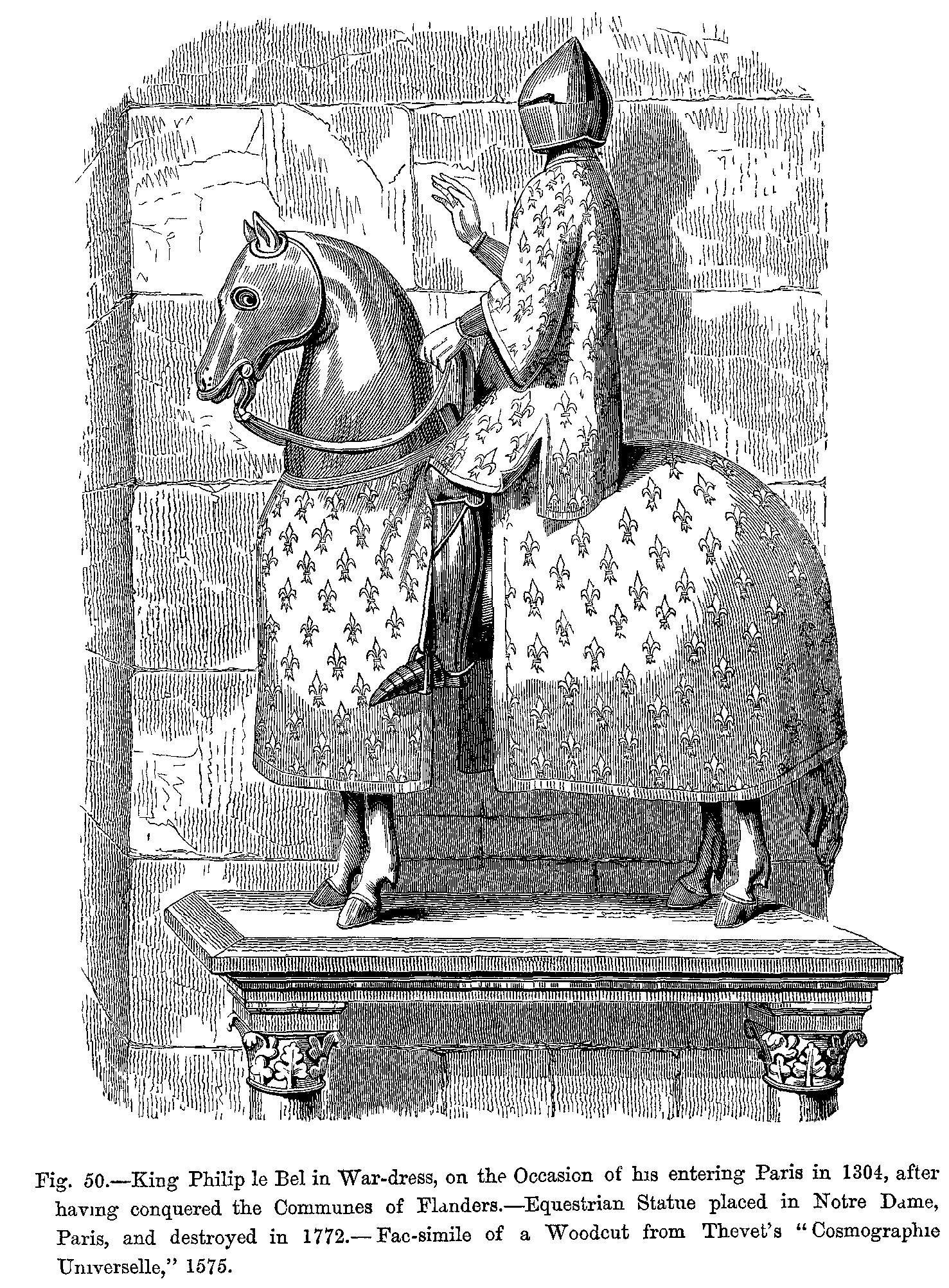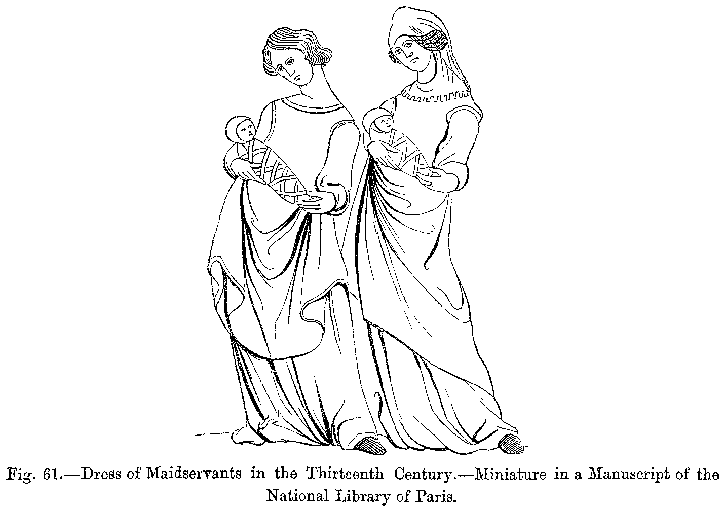 As we approach the fourteenth century--an epoch of the Middle Ages at which, after many changes of fashion, and many struggles against the ancient Roman and German traditions, modern national costume seems at last to have assumed a settled and normal character--we think it right to recapitulate somewhat, with a view to set forth the nature of the various elements which were at work from time to time in forming the fashions in dress. In order to give more weight to our remarks, we will extract, almost word for word, a few pages from the learned and excellent work which M. Jules Quicherat has published on this subject.