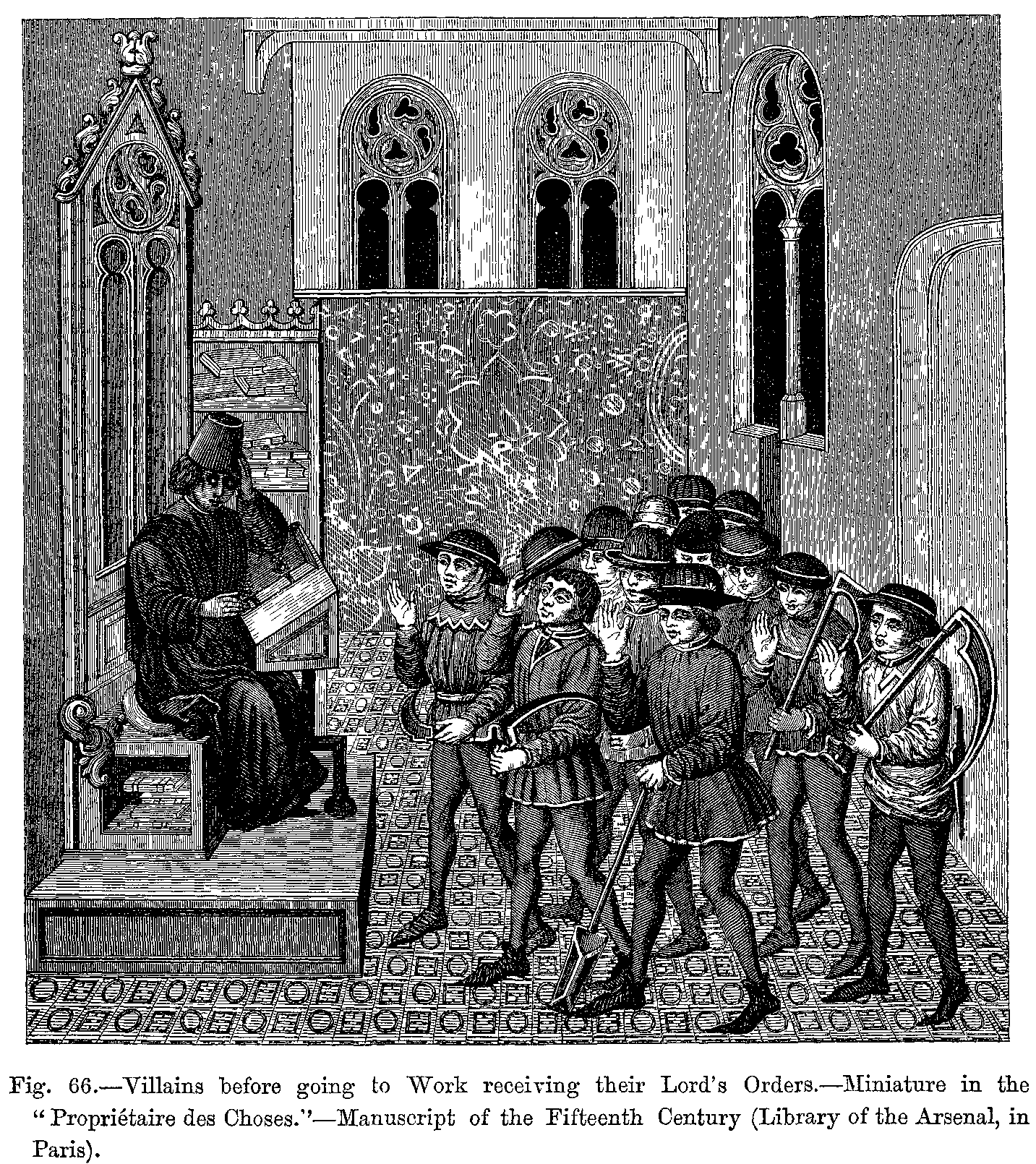 Feudalism, evidently of Germanic origin, will also attract our attention, and we shall draw a rapid outline of this legislation, which, barbarian at the onset, becomes by degrees subject to the rules of moral progress. We shall ascertain that military service is the essence itself of the "fief," and that thence springs feudal right. On our way we shall protest against civil wars, and shall welcome emancipation and the formation of the communes. Following the thousand details of the life of the people, we shall see the slave become serf, and the serf become peasant. We shall assist at the dispensation of justice by royalty and nobility, at the solemn sittings of parliaments, and we shall see the complicated details of a strict ceremonial, which formed an integral part of the law, develop themselves before us. The counters of dealers, fairs and markets, manufactures, commerce, and industry, also merit our attention; we must search deeply into corporations of workmen and tradesmen, examining their statutes, and initiating ourselves into their business. Fashion and dress are also a manifestation of public and private customs; for that reason we must give them particular attention.