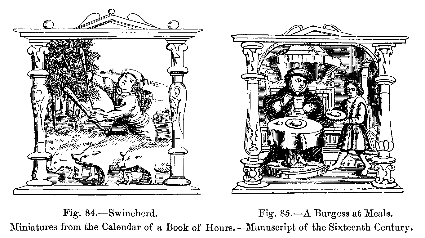 Fig. 418.--Costume of English Servants in the Fourteenth Century.--From Manuscripts in the British Museum.