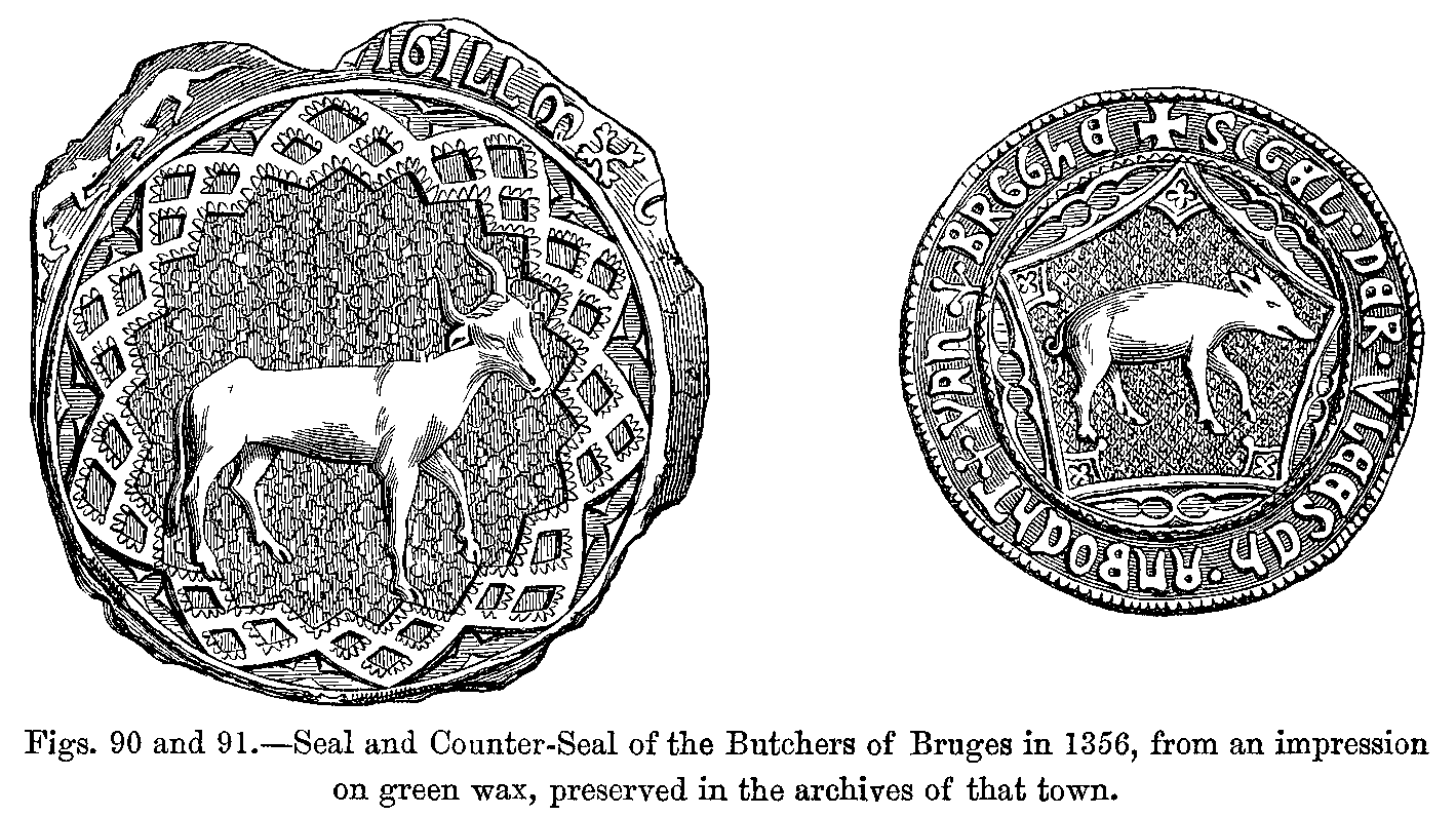 "The braies, or brayes, were a kind of drawers, generally knitted, sometimes made of woollen stuff or silk, and sometimes even of undressed leather. .... Our ancestors derived this part of their dress from the ancient Gauls; only the Gallic braies came down to the ankle, whereas those of the thirteenth century only reached to the calf. They were fastened above the hips by means of a belt called the braier.