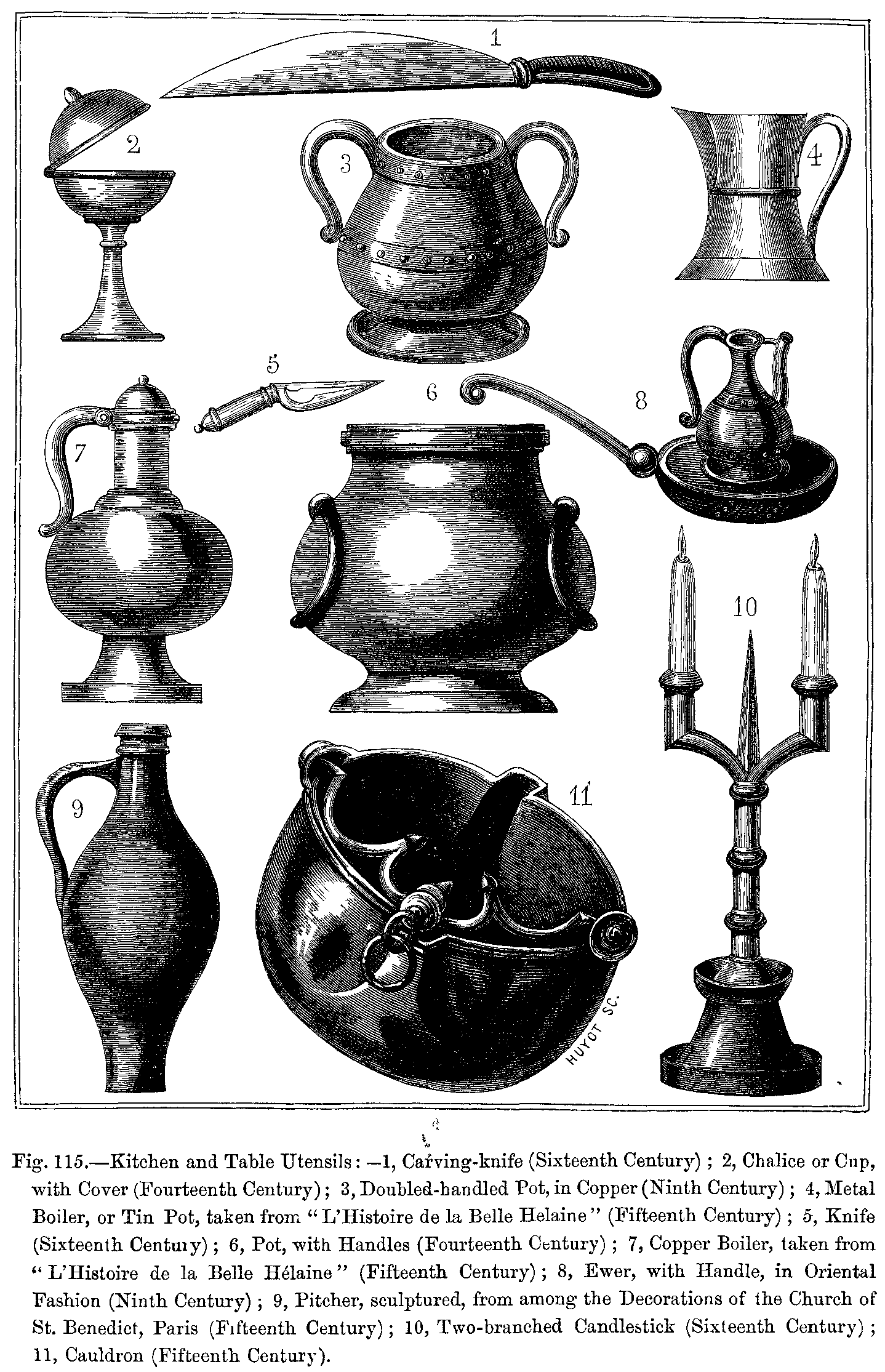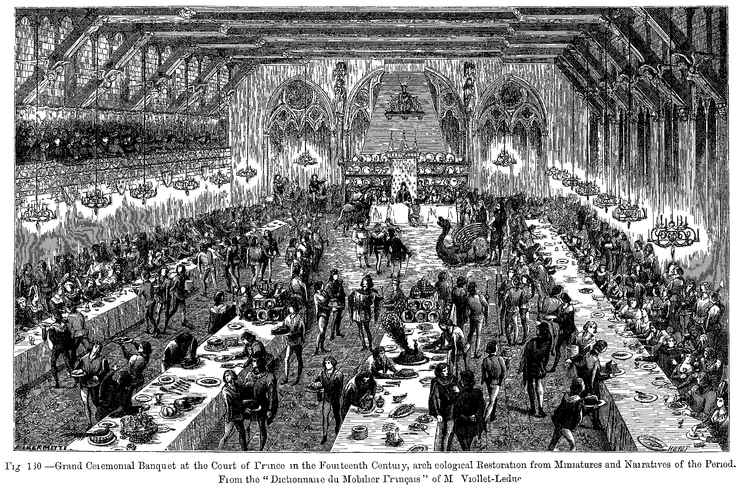 History of Bread.--Vegetables and Plants used in Cooking.--Fruits.--Butchers' Meat.--Poultry, Game.--Milk, Butter, Cheese, and Eggs.--Fish and Shellfish.--Beverages: Beer, Cider, Wine, Sweet Wine, Refreshing Drinks, Brandy.--Cookery.--Soups, Boiled Food, Pies, Stews, Salads, Roasts, Grills.--Seasoning, Truffles, Sugar, Verjuice.--Sweets, Desserts, Pastry,--Meals and Feasts.--Rules of Serving at Table from the Fifteenth to the Sixteenth Centuries.