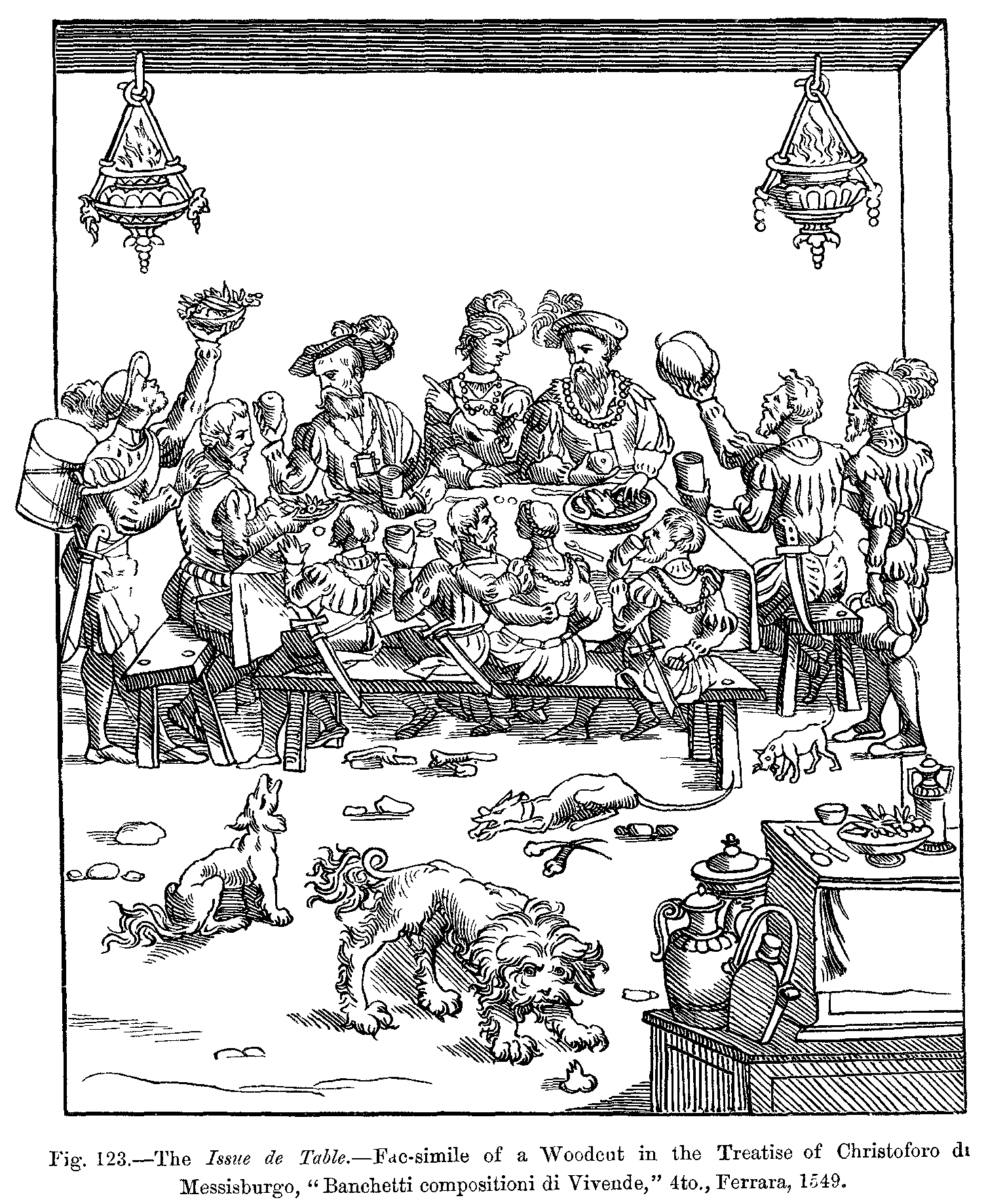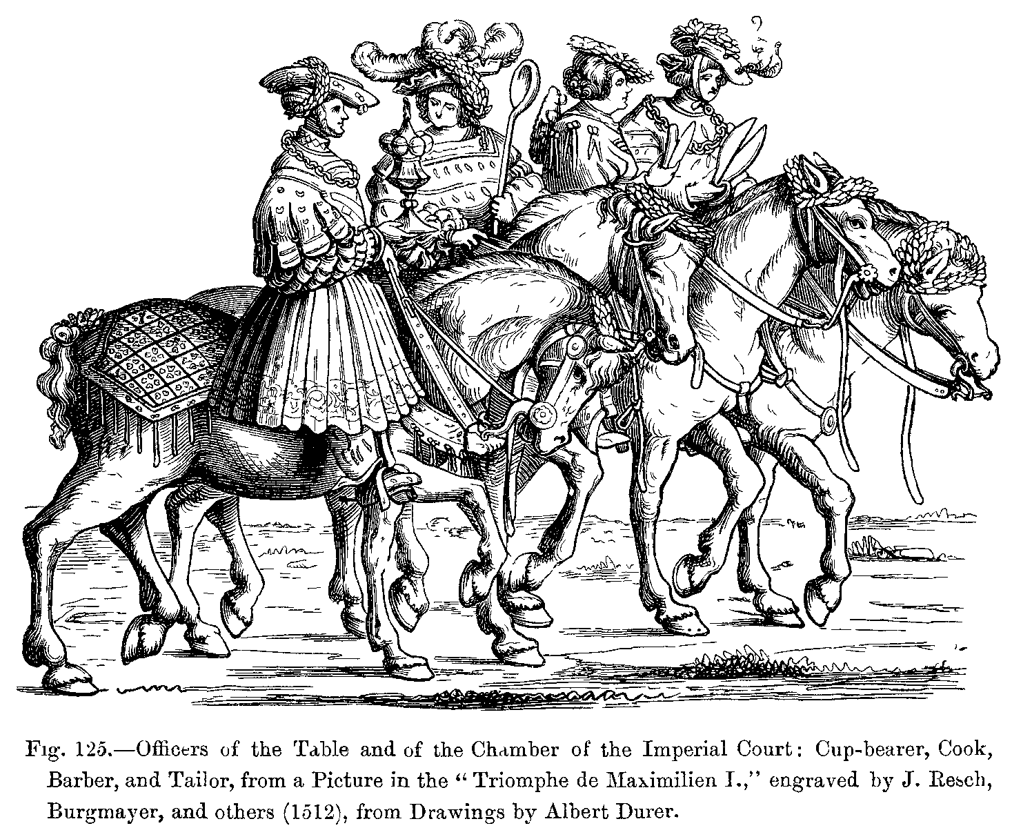 5. Table Service of a Lady of Quality. Fac-simile of a Miniature in the "Roman de Renaud de Montauban." Costumes of the Fifteenth Century.