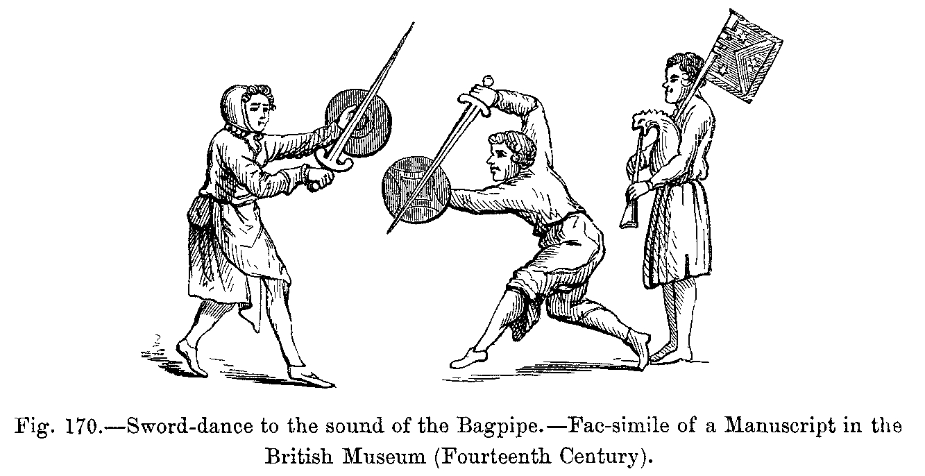 "By chausses was meant what we now call long stockings or hose. The stockings were of the same colour and material as the braies, and were kept up by the lower part of the braies being pulled over them, and tied with a string.