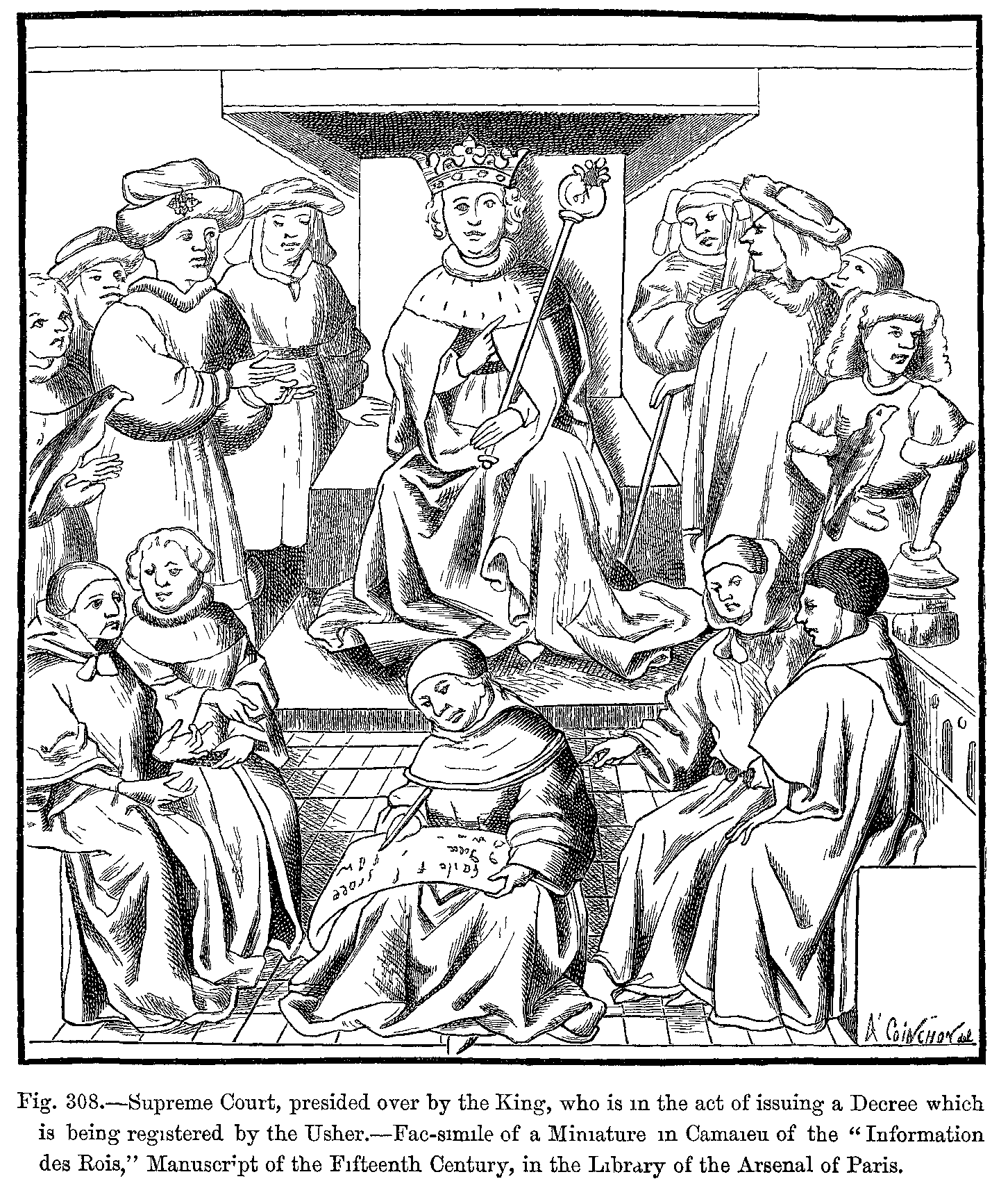 The Family the Origin of Government.--Origin of Supreme Power amongst the Franks.--The Legislation of Barbarism humanised by Christianity.--Right of Justice inherent to the Right of Property.--The Laws under Charlemagne.--Judicial Forms.--Witnesses.--Duels, &c.--Organization of Royal Justice under St. Louis.--The Châtelet and the Provost of Paris.--Jurisdiction of Parliament, its Duties and its Responsibilities.--The Bailiwicks.--Struggles between Parliament and the Châtelet.--Codification of the Customs and Usages.--Official Cupidity.--Comparison between the Parliament and the Châtelet.