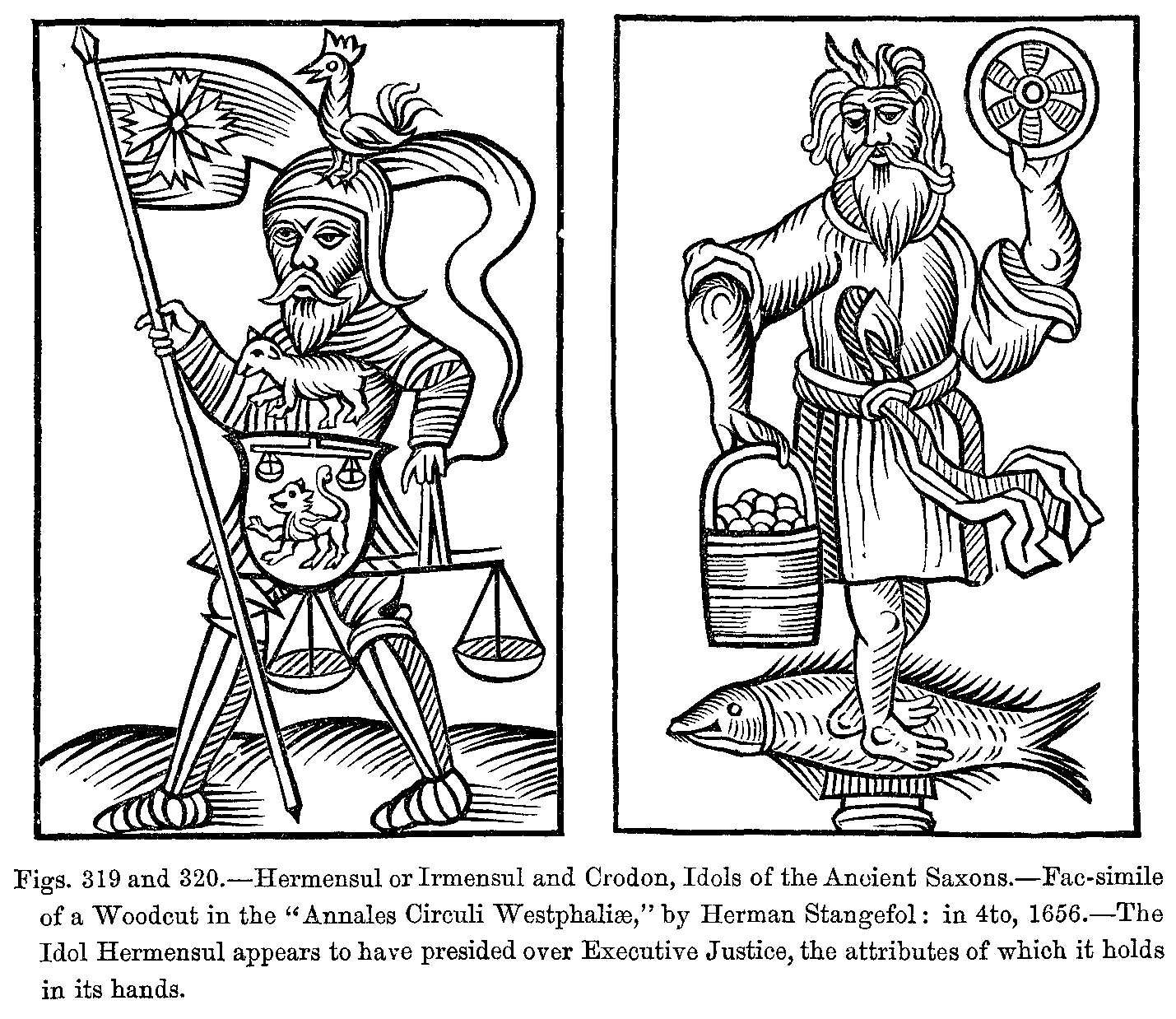 Fig. 403.--Costume of King Childebert (Seventh Century).--From a Statue formerly placed in the Refectory of the Abbey of St. Germain-des-Prés.