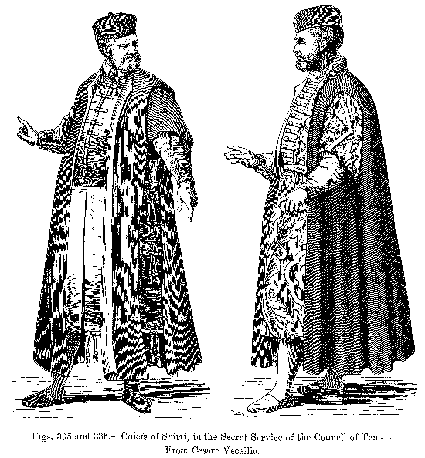 Fig. 425.--Italian Costumes of the Fifteenth Century: Notary and Sbirro.--From two Engravings in the Bonnart Collection.