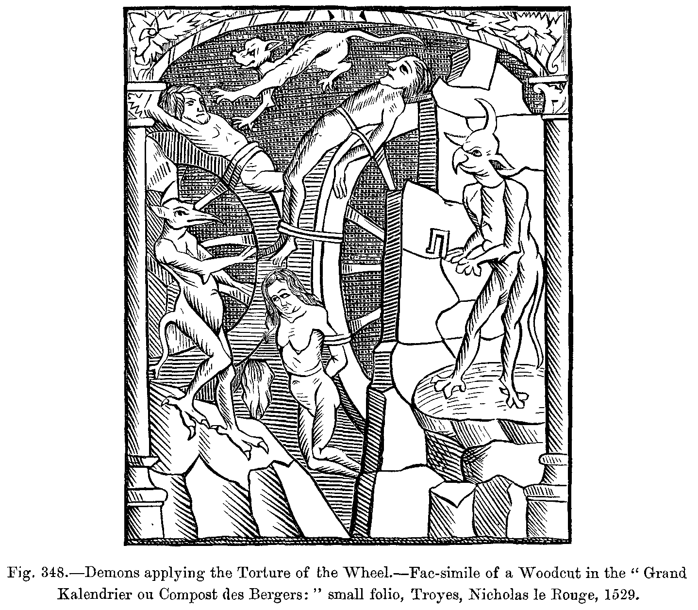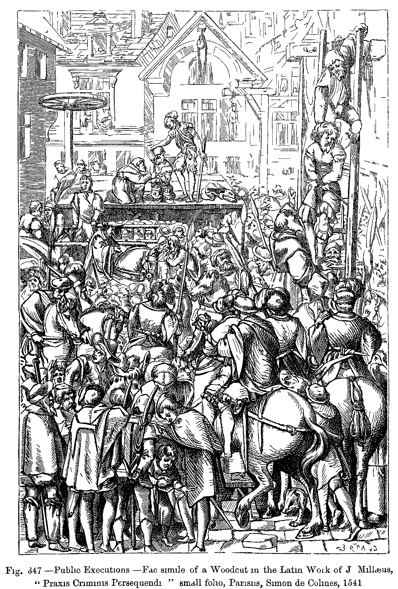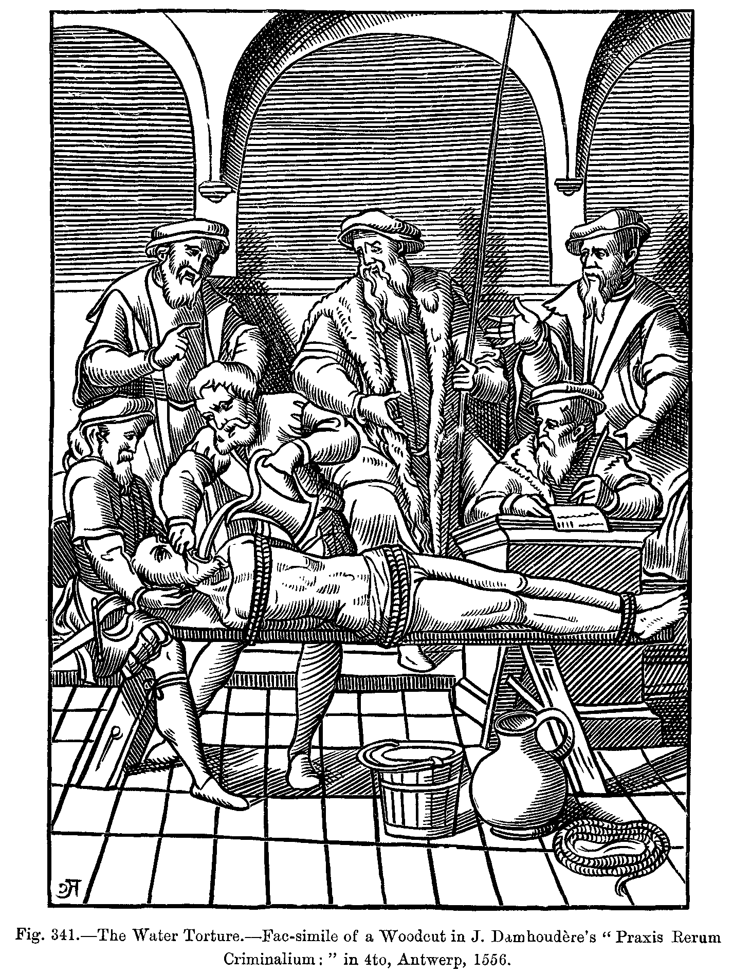 Refinements of Penal Cruelty.--Tortures for different Purposes.--Water, Screw-boards, and the Rack.--The Executioner.--Female Executioners.--Tortures.--Amende Honorable.--Torture of Fire, Real and Feigned.--Auto-da-fé.--Red-hot Brazier or Basin.--Beheading.--Quartering.--The Wheel.--Garotting.--Hanging.--The Whip.--The Pillory.--The Arquebuse.--Tickling.--Flaying.--Drowning.--Imprisonment.--Regulations of Prisons.--The Iron Cage.--"The Leads" of Venice.