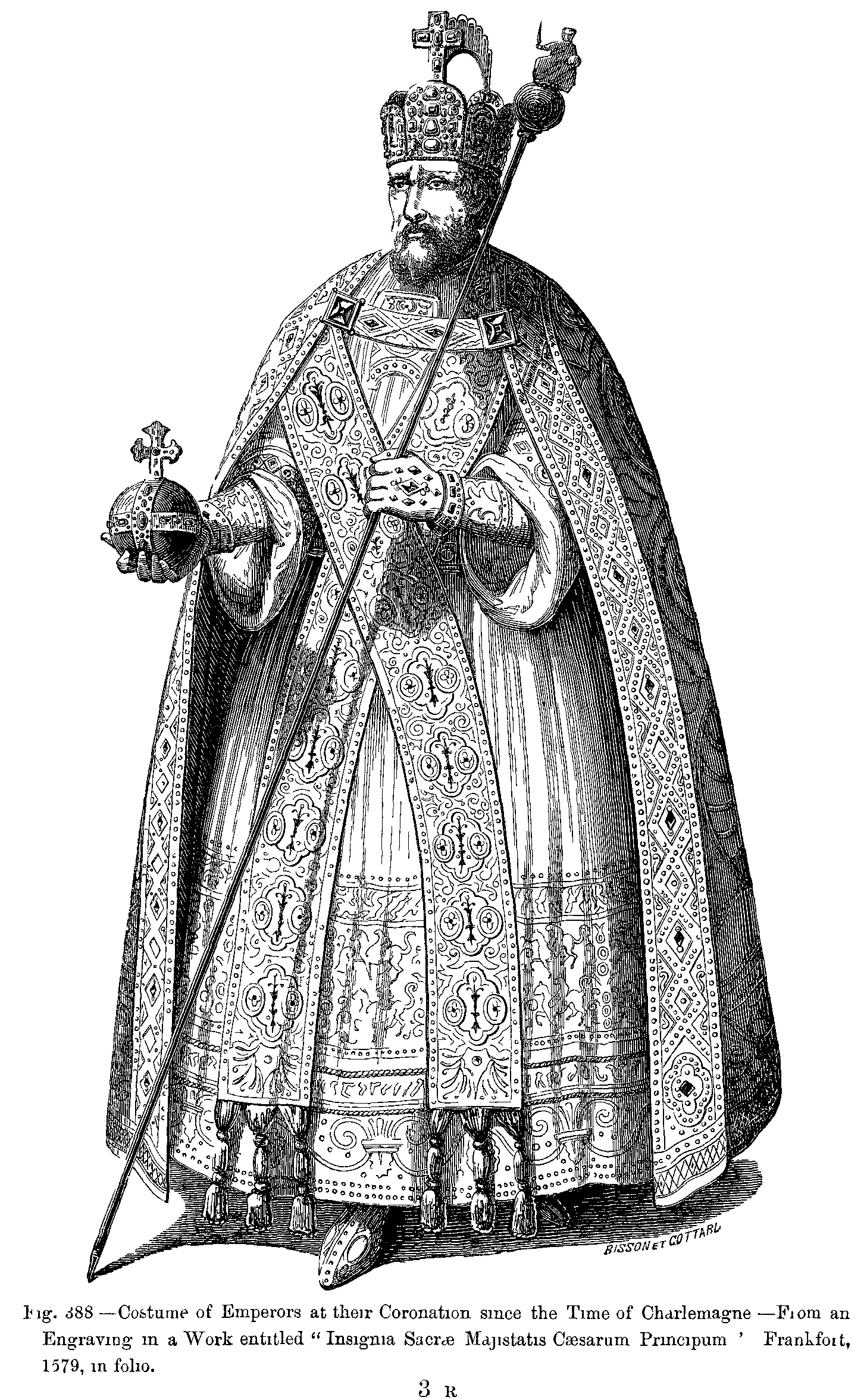 Nevertheless, this monarch, who so severely proscribed luxury in daily life, made the most magnificent display on the occasions of political or religious festivals, when the imperial dignity with which he was invested required to be set forth by pompous ceremonial and richness of attire.