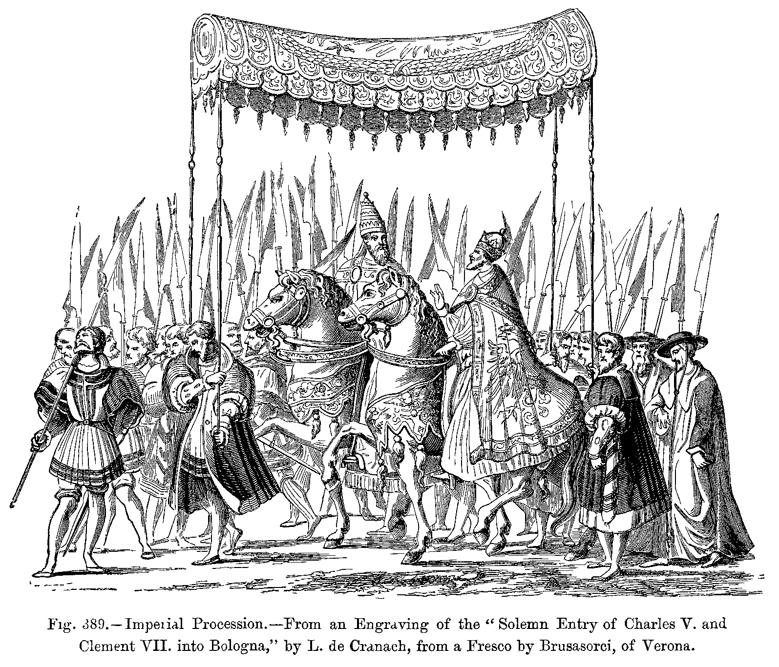 Origin of Modern Ceremonial.--Uncertainty of French Ceremonial up to the End of the Sixteenth Century.--Consecration of the Kings of France.--Coronation of the Emperors of Germany.--Consecration of the Doges of Venice.--Marriage of the Doge with the Sea.--State Entries of Sovereigns.--An Account of the Entry of Isabel of Bavaria into Paris.--Seats of Justice.--Visits of Ceremony between Persons of Rank.--Mourning.--Social Courtesies.--Popular Demonstrations and National Commemorations--New Year's Day.--Local Festivals.--Vins d'Honneur.--Processions of Trades.