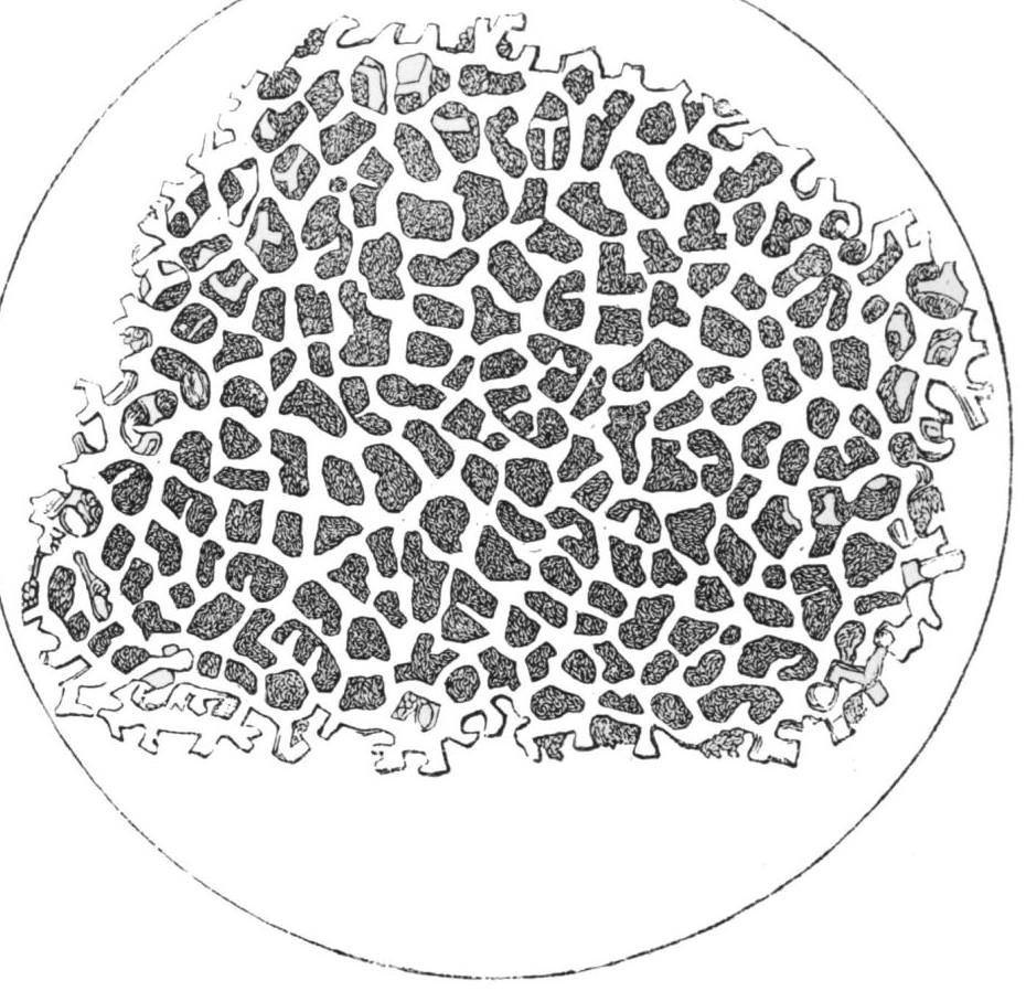 In the raw chicory-root three parts or structures may be distinguished with facility, cells, dotted vessels, and vessels{102} of the latex. These vessels afford useful means of distinguishing chicory from some other roots employed in the adulteration of coffee. The chief part of the root is made up of little utricles or cells. These are generally of a rounded form, but sometimes they are narrow and elongated. The former occur when the pressure is least and the root soft, the latter in the neighbourhood of the vessels.[3]