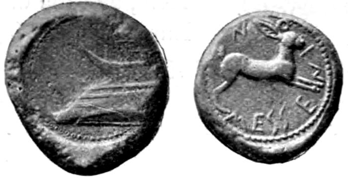 | 9 | Samian coin with Samaina and Messanian coin with hare | 75 |