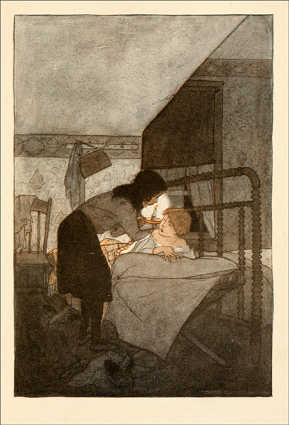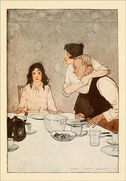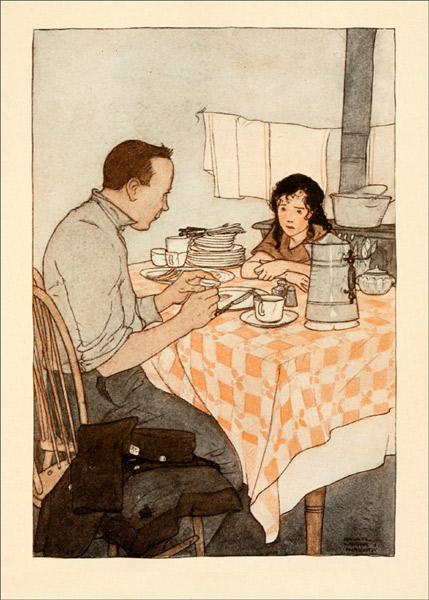 No one heeded her in the least. George by this time was seated at the table and Rosie was hanging over his shoulder. Terence and small Jack stood facing him at the other side of the table and Miss Ellen O'Brien, with the baby in her arms, lingered near the door.