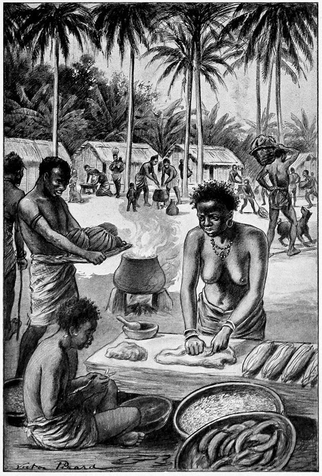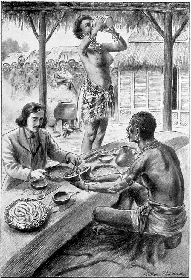 When we reached King Regundo’s plantation we were received with great demonstrations of joy by Regundo, his wife, and all the slaves. They exclaimed: “Will not our master’s heart be glad when he sees these large tusks, for he will get many goods when he barters for them.”