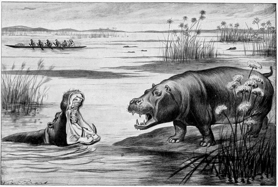 | King Mombo gives me the stick “Omemba”—I leave the village on a hunting trip—Parting injunctions—A herd of hippopotami | 55 |