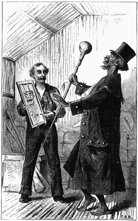 | Grotesque Head-dresses.—Curious fashions in Teeth.—A venerable Granite Boulder.—Interior of a Hut.—A warlike race of Savages.—Giving them an Electric Shock. | 226 |
