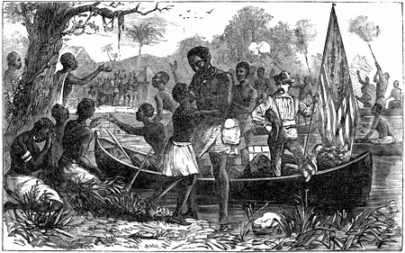 | Down the River in a Canoe.—A strange Passenger.—Talk with a Gorilla.—Landing through the Breakers.—Preparing to cross the Continent.—The Departure. | 91 |