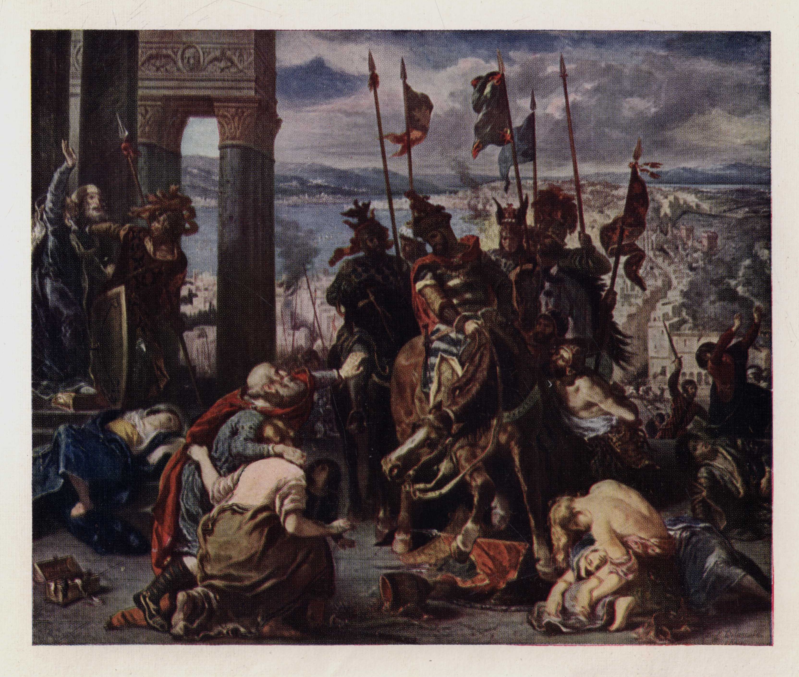 Painted in 1841 for the Gallery at Versailles, whence it was subsequently removed to the Louvre, this large, dramatic composition belongs to the period when Delacroix's palette, inspired from the first by Rubens and Veronese, had assumed increased richness under the influence of Eastern light and colour. It is significant of the lack of appreciation shown to the master by his contemporaries, and even by his supporters, that the commission was accompanied by the request that the picture should not look like a Delacroix.