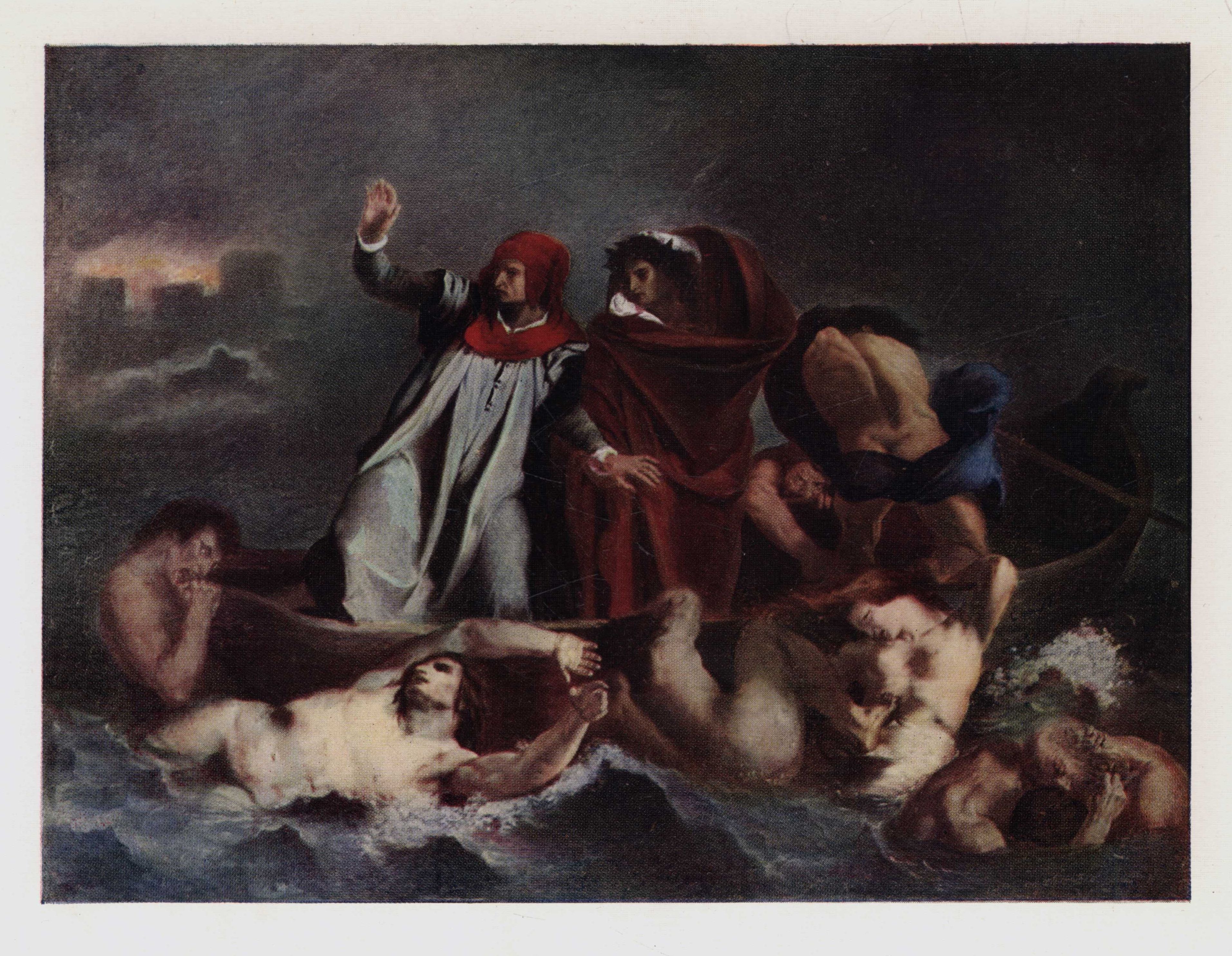 The case of Delacroix was different. He had dared to bring passion and intense dramatic expressiveness into a subject taken from literature. He had chosen a mediæval poet, instead of going back to classic antiquity. And he had used pigment as it was not used by any of his contemporaries. He had used it in truly painter-like fashion, making the colour itself contribute to the emotional appeal of the drama and giving to the actual brushwork functional value in the building up of form. The writhing bodies of the Damned surrounding the boat and gleaming lividly through the terrible gloom are painted with a superb mastery which recalled to Thiers "the boldness of Michelangelo and the fecundity of Rubens," and which made Gros exclaim, "This is Rubens chastened!"