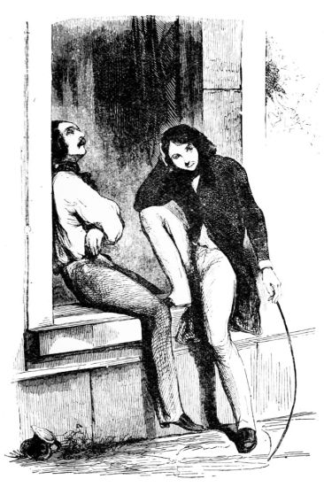 “It is I!” “It is I!” “She is making eyes at me.” “She is winking at me.” “You are mistaken, my boy.” “You are wrong, old man.{46}” Both together, “Stop, stop, stop, we are both right ... she squints!”
