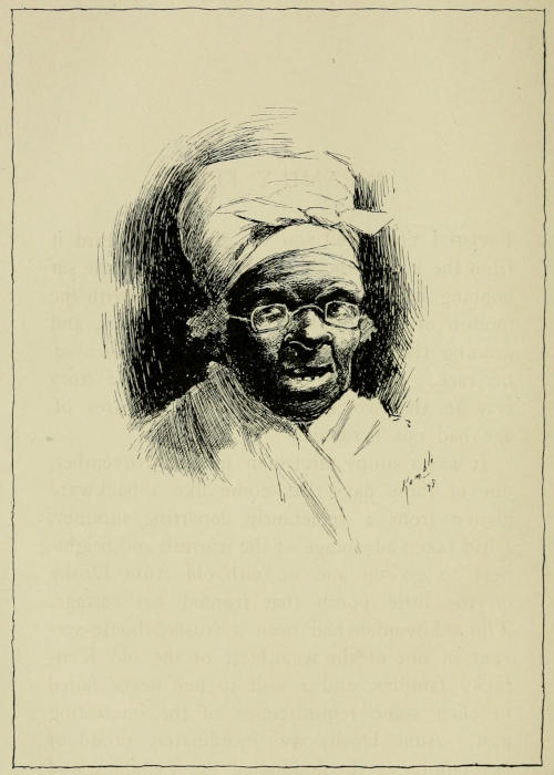 All the next day Anner ’Lizer, erstwhile so cheerful, went about her work sad and silent; every now and then stopping in the midst of her labours and burying her face in her neat white apron to sob violently. It was true, as Aunt Hannah expressed, that “de Sperit[17] had sholy tuk holt of dat gal wid a powahful han’.”