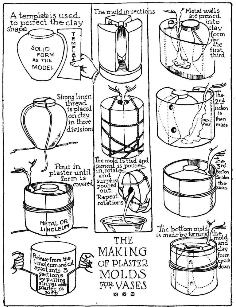 VASES AND BOWLS as a problem for the schoolroom can be simplified if the teacher produces previously several vase molds so{184} that the pupils can make their casts in individually selected colors, after which they can scrape or slip paint the shapes as they are removed from the molds.