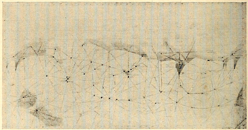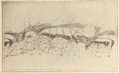 371 The position of the canals, with regard to the main features of the disk, has a cogency of its own, an argument from time. The places from which the lines start and to which they go are such as to imply a dependence of the latter upon the former chronologically. The lines are logically superposed upon the natural features; not as if they had grown there, but as if they had been placed there for topographic cause. Those termini are used which we should ourselves select for stations of intercommunication. For the lines not only leave important geodetic points, but they travel directly to equally salient ones.