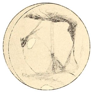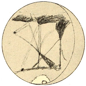 The shape of the oases also suggests significance. Their form is round, a solid circle of shading of so deep a tone as to seem black, although undoubtedly in truth blue-green. Now, a circular area has this peculiar property, that it incloses for a given length of perimeter the maximum of space. Any other area has a longer inclosing boundary for the surface inclosed. Considering 372 each area to be made up of onion-like envelops to an original core, each similar in shape to the kernel, we see that the property in question means that the average distance for points of the circular area from the centre is less than the same distance for those of any other figure. This has immediate bearing on the possible fashioning of such areas. For sufficient intelligence in the fashioners would certainly lead to a construction, where the greatest area could be attended to at the least expenditure of force. This would be where the distance to be traveled from the centre to all the desired points was on the average least; that is, the area would be round.