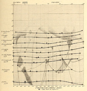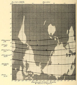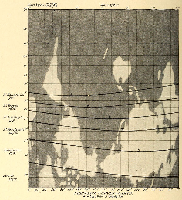 Diurnal shutting off of the heat affects the process but little, provided the fall be not below freezing at the hottest season. So much is shown by the fauna of our arctic and sub-arctic zones, but still more pertinently to Mars by the zones of the San Francisco Peak region, since the thinner air of altitude, through which a greater amount of heat can radiate off, is there substituted for the thicker one of latitudinally equal isotherms. Here again with the diurnal as before with the seasonal it is the maximum, not the mean, or, till low, even the minimum temperature, that tells.