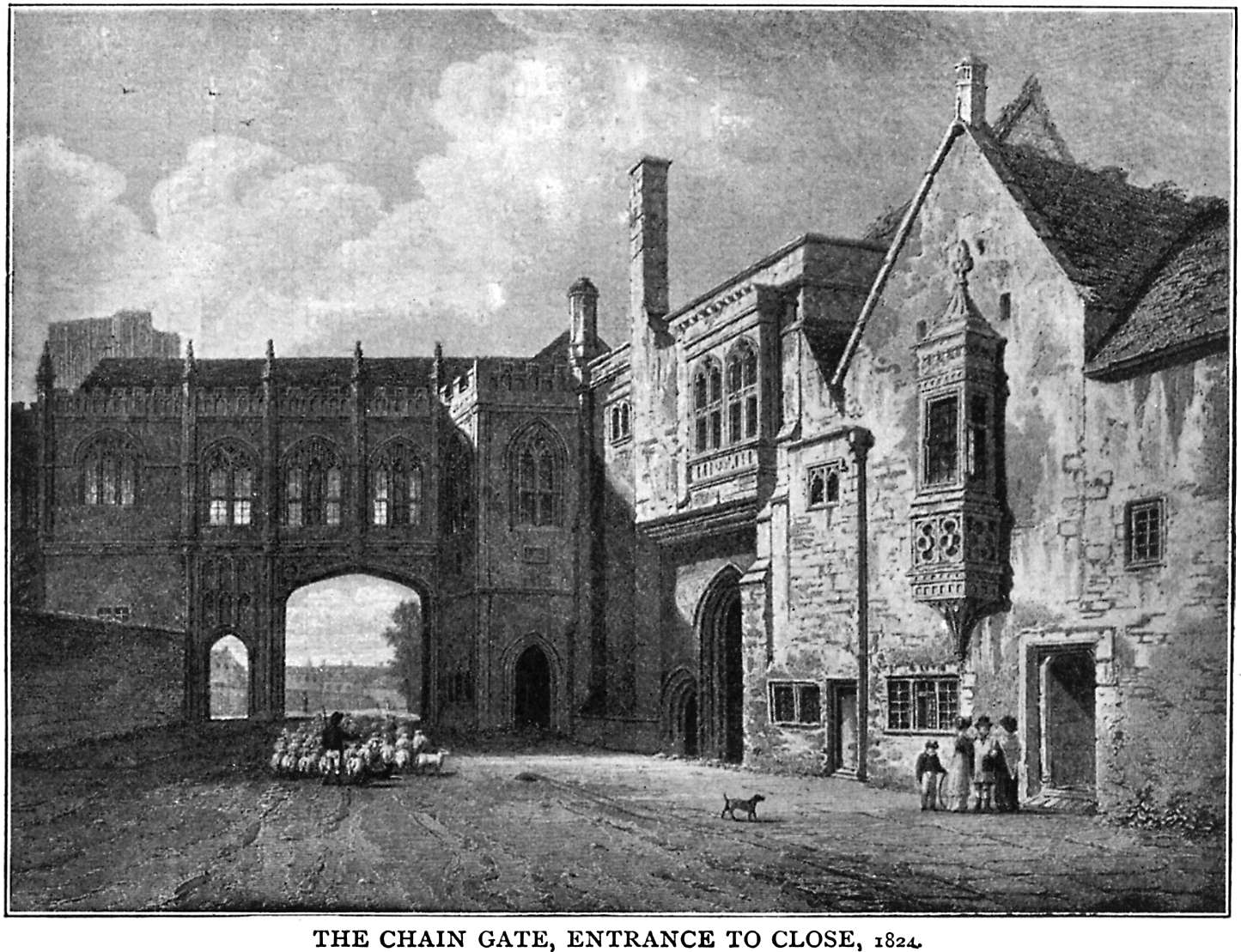 Chyles tells us, too, that there was morning and evening prayer in the "Vicars' Chapell in Close Hall," at six, forenoon and afternoon, in winter, and seven in summer, in addition to the cathedral services at the "canonical howers." Before his time there had been only a morning sermon on Sundays, and, in the afternoon, "the whole Cathedrall" had been in the habit of going to St. Cuthbert's, returning with the mayor and his brethren for the cathedral prayers at four; "but since his Majesty's Restoracion one likewise in the Afternoones here is preached by the said prebends in theire turns. Soe that here the Sermonizing people may have their Bellyfull of preaching and forbeare crying out, They are starved for want of the Word and calling our clergy Dumb Doggs."