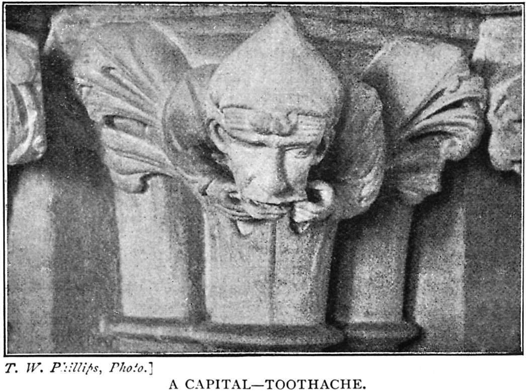 The reparation here mentioned refers in all probability to the roof and piers of the transepts and eastern part of nave, damaged by the fall of the tholus. The famous western capitals of the transepts, with their frequent representations of the miseries of toothache, must refer to the second William Bytton, who had died in 1274, and whose tomb became famous for its dental cures (p. 125). No doubt, the offerings at the 12shrine of this local saint helped considerably to swell the funds for the building operations.