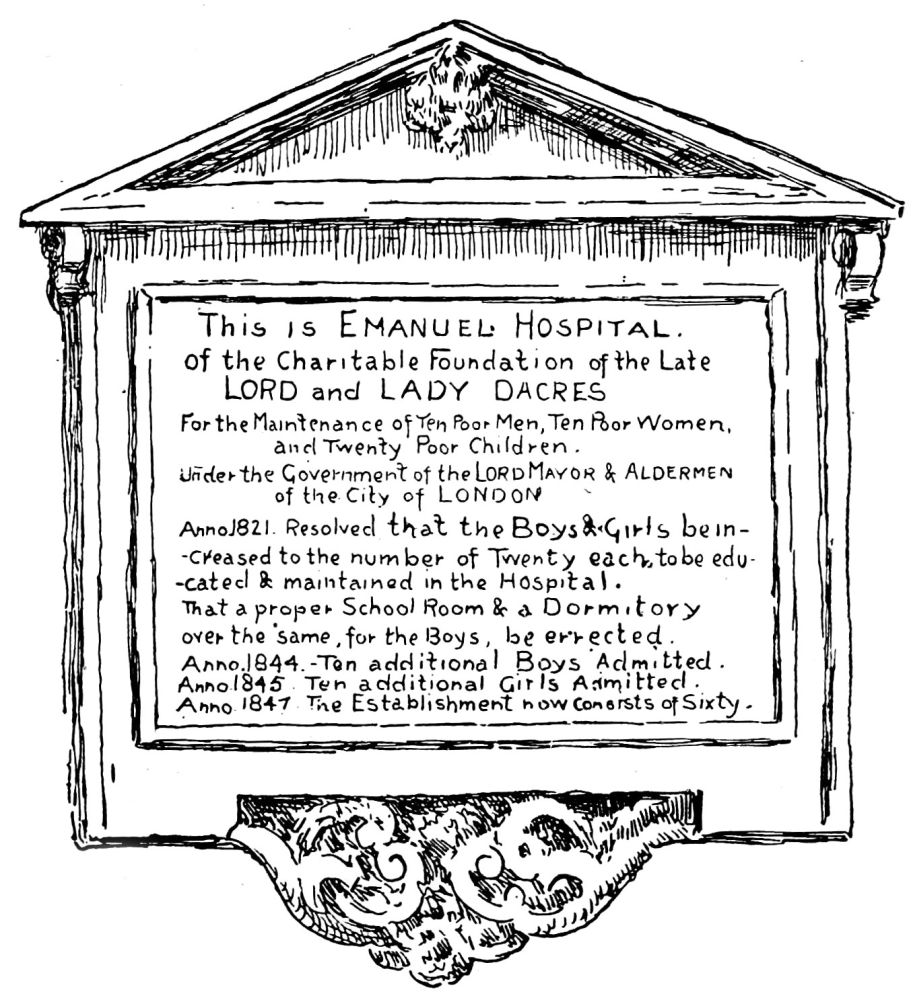One might be inclined to think that a few reflections, new or old, could be suggested by the streets, where custom has so much staled any variety that existed. Leigh Hunt again declares that there is not a single London street—that endless world of flagging, stone, and brick—from which the pleasant vision of a tree is not to be seen. I believe the fact to be true in the main—certainly was true in his day. What curious survivals still remain to us—such as would make the foreigner stop and look back at long and eagerly, and go unheeded by the careless resident! To give an instance or two: On a Sunday morning the early promenader is likely to meet a little procession passing through the Mall of ten or a dozen boys, gorgeously clad in scarlet coats of antique cut, richly and profusely laced with gold, with black hose and shoes with buckles, college caps with gold tassels. Few even in London have encountered these little gentry, and if they did would wonder exceedingly. They belong to the Court, and are the singing boys of the Royal Choir. Again, to pass by Newgate Street and look in between the railings at the boys of the old foundation of “Christ’s” busily engaged enjoying football—what a quaint costume, the orange stockings, the monastic gown confined with a leather strap—like a “Frere”—and the curious rule which interdicts wearing hat or cap, apparently without injury. And we have still left the “Beefeaters” or Yeomen of the Guard.