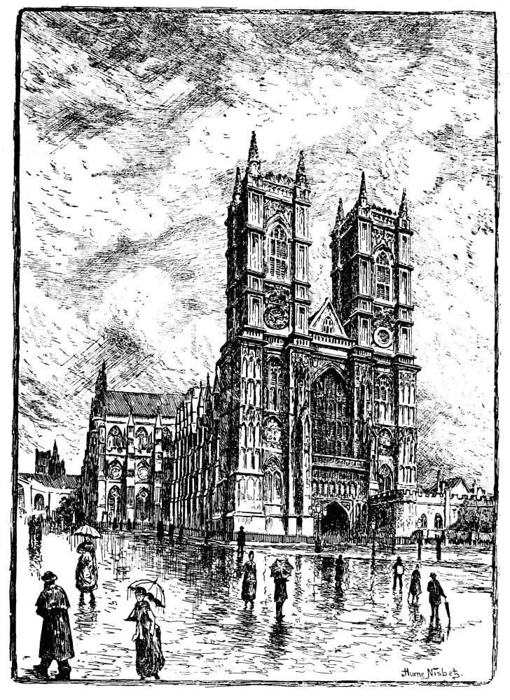 WE shall commence our pilgrimage at that striking and imposing scene, the old “Broad Sanctuary,” Westminster. Few may have noted the quaint obelisks which at intervals help to form the inclosure! Lately the churchyard was laid down in grass, and the flagging removed; but it may be doubted if this be a real improvement. The air of space seems diminished. A sward of this kind is becoming in a genuine close, as at Salisbury, where the cathedral is in the country; but here the minster is in the heart of the town—in the streets—and the grass seems to have an artificial air. Sixty years ago this inclosure displayed a number of fine old trees, which would have been in admirable keeping, and a picturesque adornment. But when the coronation of George IV. was at hand, the obsequious Dean and Chapter determined to erect scaffolding and ample theatres to view the procession; and the trees were cut down. As Mr. Croker said, they had been so ill-advised or so greedy as to take this step, and the “loss of this ornament to the public was great, while the profit to the Chapter did not perhaps amount to £10.”