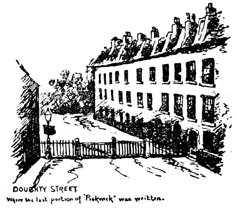 [28] On the old familiar green cover of “Pickwick,” Mr. Pickwick is shown seated in a punt, fishing, and in the background is seen the old Putney Church, with the quaint bridge.