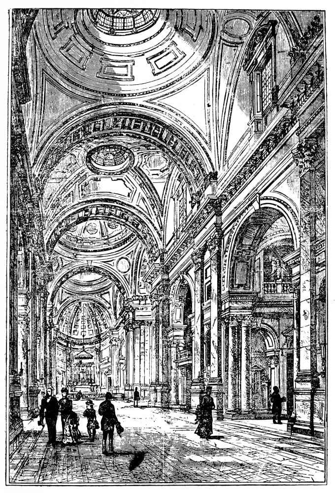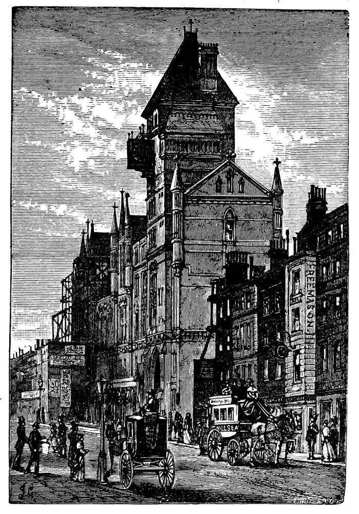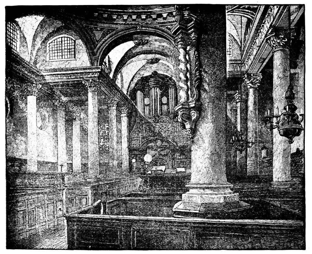 He is even more severe on some of the churches; for instance, All Souls, in Langham Place, “a circular building in two stories, with Ionic and Corinthian columns, surmounted by a pointed sugar-loaf.”
