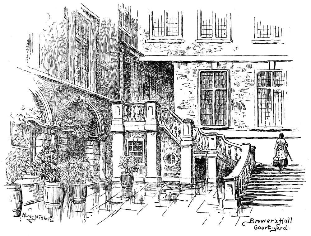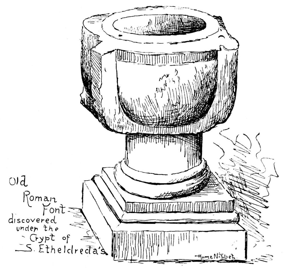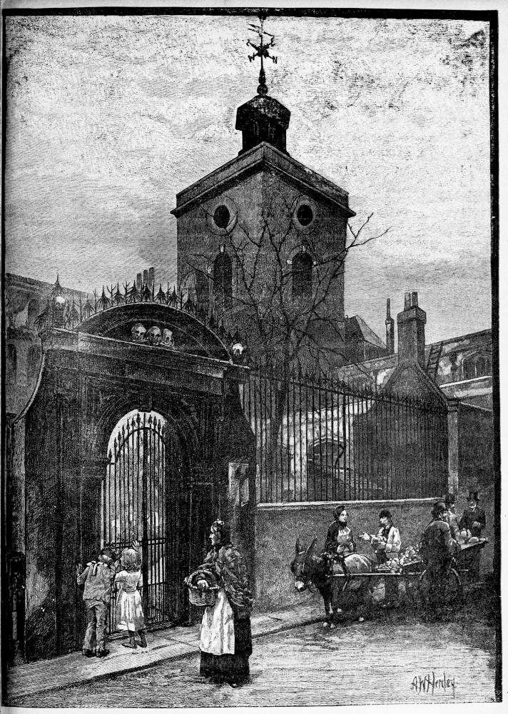 Indeed, few can conceive how many interesting streets, houses, corners, churches, and general “surprises” are to be found by those who know where to look for them. There are people who have been brought up, “man and boy,” as it is called, in London, and lived there all their life long, and who think it is little more than a repetition of the Strand and Fleet Street, and that the City is all like Lombard Street. What London abounds in is the picturesque and the poetical: there is really an abundance of charming “bits,” of artistic buildings, and of relics as noteworthy as any in a foreign town. Some of them we pass every day, but familiarity obscures their merit. Others, too, we pass every day, but they are hid behind screens and walls, or locked in behind old rusty gates. Often thinking of these ignored treasures, I determined to explore for myself, and see if I could do something in a humble way to introduce to better notice this “Picturesque London,” or the picturesqueness of London. Prompted by this sympathetic impulse, I have for years made regular, diligent “travels in London” as an explorer, and have been astonished at all I saw. It was true, no doubt, that many of these things were described in the official guide-books, but after the appraising, registering fashion of such works. What one has looked for was some one with sympathy to point out the merits and beauties. I pursued my new calling with a growing relish, often directed to inspect curiosities by a friendly counsellor, more often stumbling on them by accident. In time it was amazing what a number of old houses, old doorways, old churches, old corners, I was thus introduced to, what unsuspected treasures were laid open, and above all what a new fund of entertainment was provided for a simple street promenader.