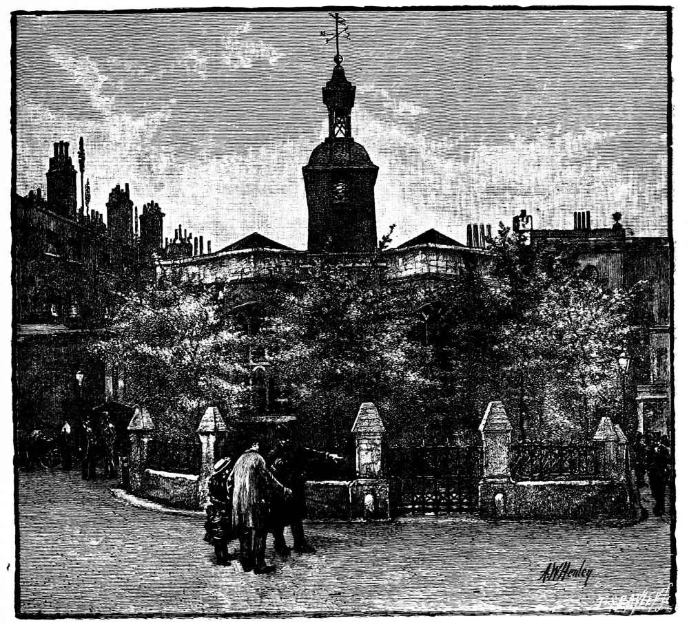 The mutations in the aspect of London are taking place with an almost alarming rapidity, so that it becomes difficult even to note them. Hardly a week passes without some old street or mansion being menaced, and marked for destruction. Of a morning we see the new and significant “hoarding” set up: in a week or two we pass again, and the “housebreakers,” as they are called, are hard at work with their pickaxes, shovelling down the old Queen Anne bricks in showers of dust. From year’s end to year’s end this goes on. The hungry eyes of the speculator, or of the thriving man of business, are often fixed upon the old Wren churches, which, in his view, so idly cumber space that might be covered with useful warehouses at enormous rents. It is sad to think that eventually it will be found impossible to resist this never-relaxing pressure, and that within a few years the clearing away of these venerable memorials will have set in. The recent clamour about St. Mary’s in the Strand is truly significant, the spoilers knowing well that if they can insert their wedge or pickaxe here, a happy beginning will have been made. These old buildings have few authorized friends or guardians beyond the amiable amateur.{xi}