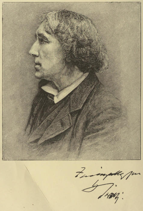 [46] Quite a number of relics of great actors have, as we have already shown, found their way to Irving’s custody; and there is always something pleasant for him to think of when he recalls the presentation. Thus on his visit to Oxford he had spoken of the last days of Edmund Kean, who had died in sore straits. A few days later he received a purse of faded green silk found in the pocket of the great actor just after his death, and found empty. It had been given by Charles Kean to John Forster, and by him to Robert Browning. Edmund and Charles Kean, Forster, Browning, and Irving form a remarkable pedigree. “How can I more worthily place it,” wrote Browning, “than in your hands, if they will do me the honour to take it, with all respect and regard?”