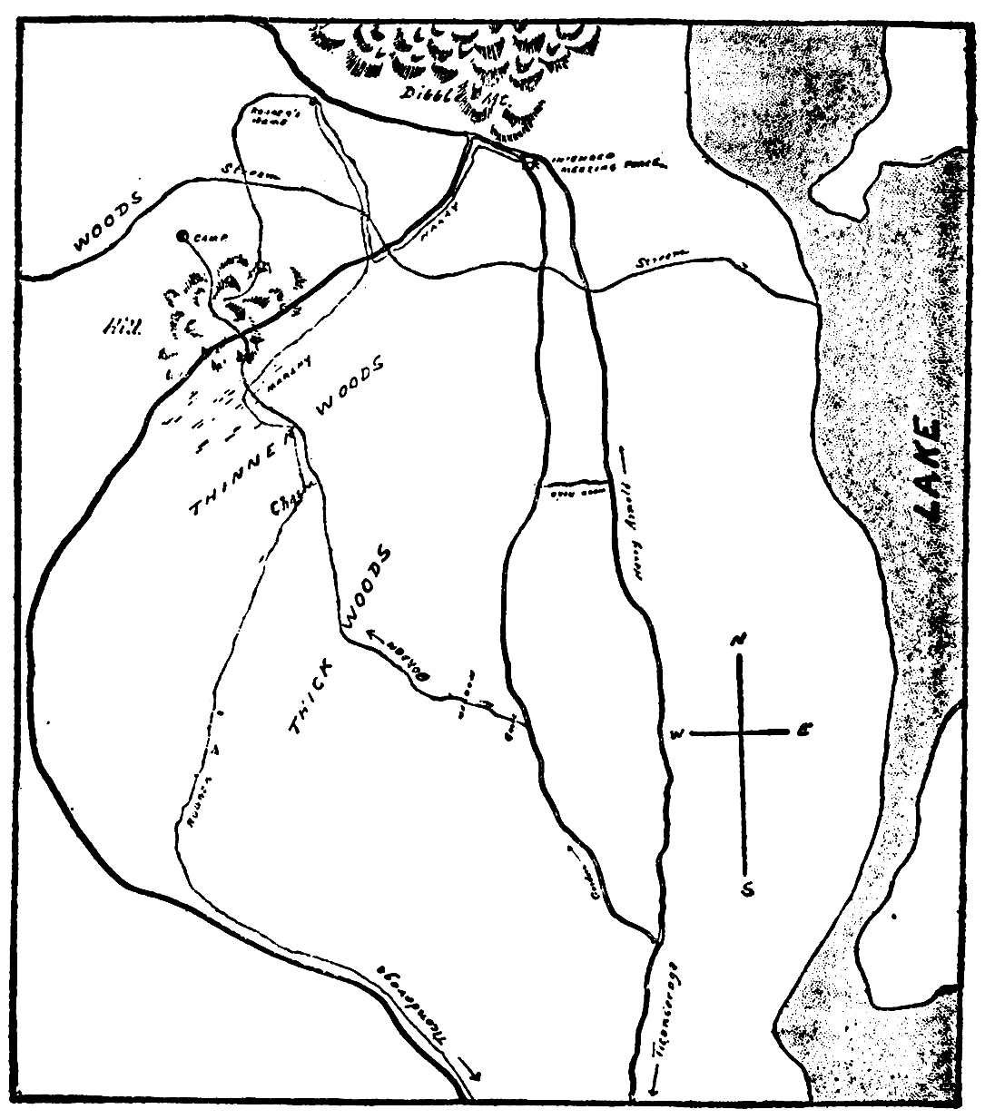 So there he sat where we first saw him, on the station bench, and thought of the two patrols in charge of Red Deer which were already on their way to the Adirondacks. They knew that he had had a bad headache the day before, and they would doubtless assume that to be the cause of his non-appearance. He pictured their gay trip up the shore of the lordly Hudson, their luncheon at Albany, their leaving the train at Ticonderoga and tramping forth in quest of a suitable camp. But whether they would settle north or south or west of Ticonderoga, he did not know. They would pitch their tents this very night somewhere along the shore of that watery serpent, Lake Champlain, but exactly where Red Deer would lead them would depend largely on information gathered en route.