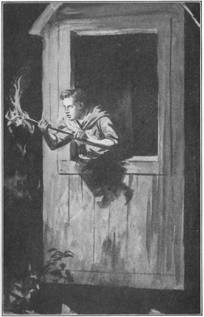 Having completed his preparations for the reception of his unknown guest, Pee-wee was seated one evening on the doorstep of Memorial Cabin communing with nature and eating a luscious tomato. The rays of dying sunlight painted the hills across the lake a vivid crimson and the truant streams from his luscious refreshment painted his scout suit an equally vivid hue. It seemed almost as if the sun were actually setting in his face in a very riot of colorful glory. Intuition, bolstered by a series of elaborate deductions, had convinced the lonely tenant of the cabin that the time of fulfillment was at hand, that his solitary guest would shortly appear. So strong was this conviction upon Pee-wee that he had, by the exercise of tremendous will power, refrained from partaking of his lonely, self-cooked meal, in consideration of the imminent arrival of his mysterious companion. “I’m going to wait till eleven o’clock,” he said, referring to his hospitable period of fasting, “because anyway he ought to be here to-night, that’s the way I figure it.”