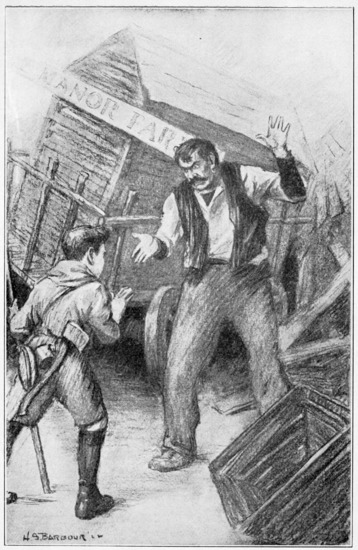 A scout is supposed to be not only economical, but cautious, and Pee-wee did not follow his two friends quite to the scene of excavation. He did not take his thirty-one cents’ worth all at once, but prudently fell behind, taking about fifteen cents’ worth. Fuller stepped up first, Ray presently joined him, and Pee-wee advanced as he gathered courage. One look at the stranger informed the three that he was the man they had seen at the station.