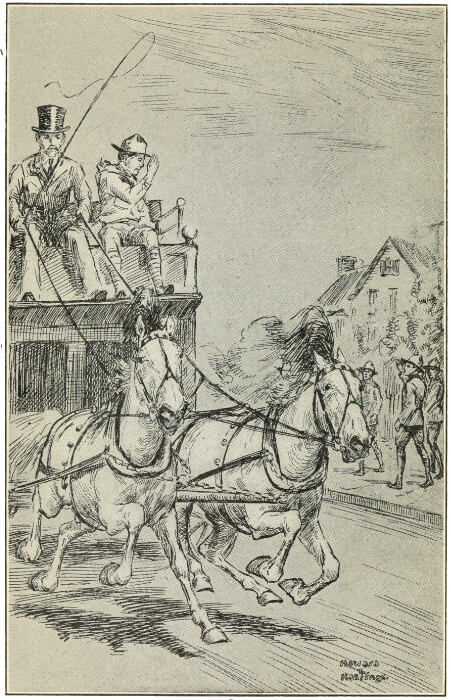 Believe me, we stuck to that trail as if it were a tight rope. Harry said if any one of us looked right or left, he’d put blinders on us. That night we camped near Nyack and early in the morning we said good-bye to the Hudson and struck in southwest till we came to our own little river—that’s the Bridgeboro River. At about four o’clock that afternoon we went tramping over the River Road bridge and hit into Main Street. Right on the corner was Bradly’s grocery wagon, and oh boy, it looked good to me, because it proved we were back home. “Bradly’s Cash Grocery,” Dorry said; “those are the three sweetest words in the world.”