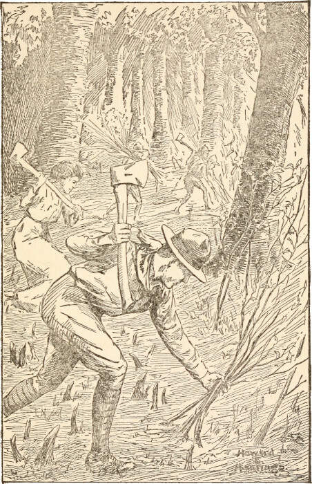 Oh boy, you should have seen that girl who had been crying. She just grabbed an axe and wouldn’t give it up. Now this is the way we did, and all the while that line of fire was coming along, nearer, nearer, nearer. We chopped away the brush so as to make a long clear space about ten or fifteen feet wide. Harry and three of the scouts and one of the girls used the axes; because that girl just wouldn’t hand over the axe and we couldn’t make her. And didn’t she turn out to be a regular Mrs. Daniel Boone!