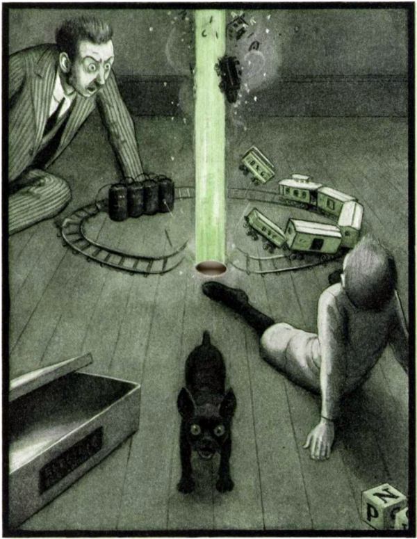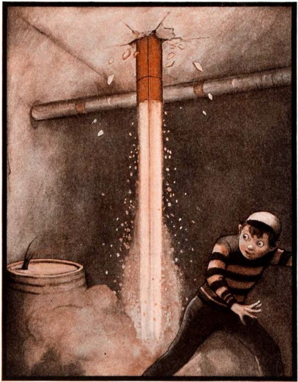 Click below to see an animation of what the growing rocket holes looked like when the reader quickly flipped through the pages of the physical book.
