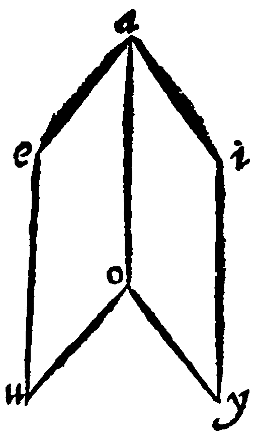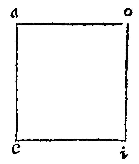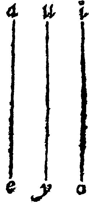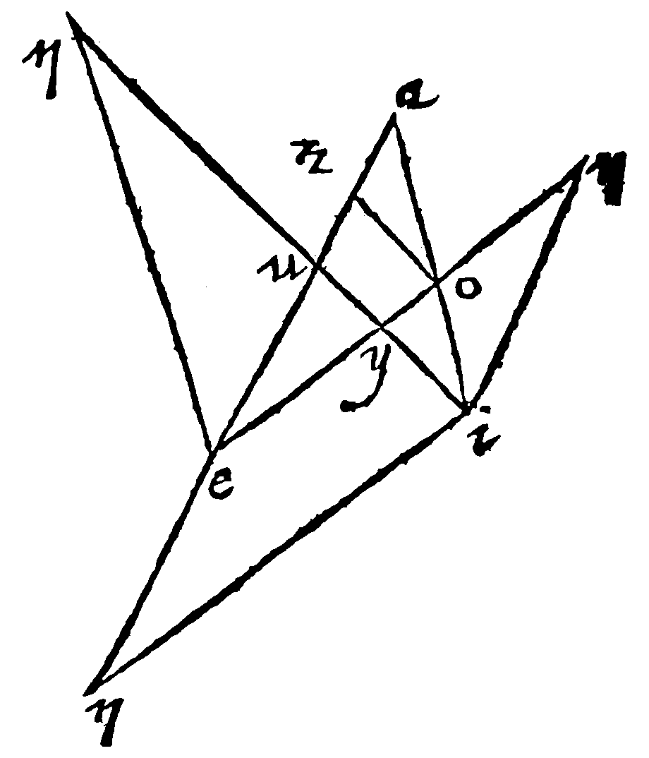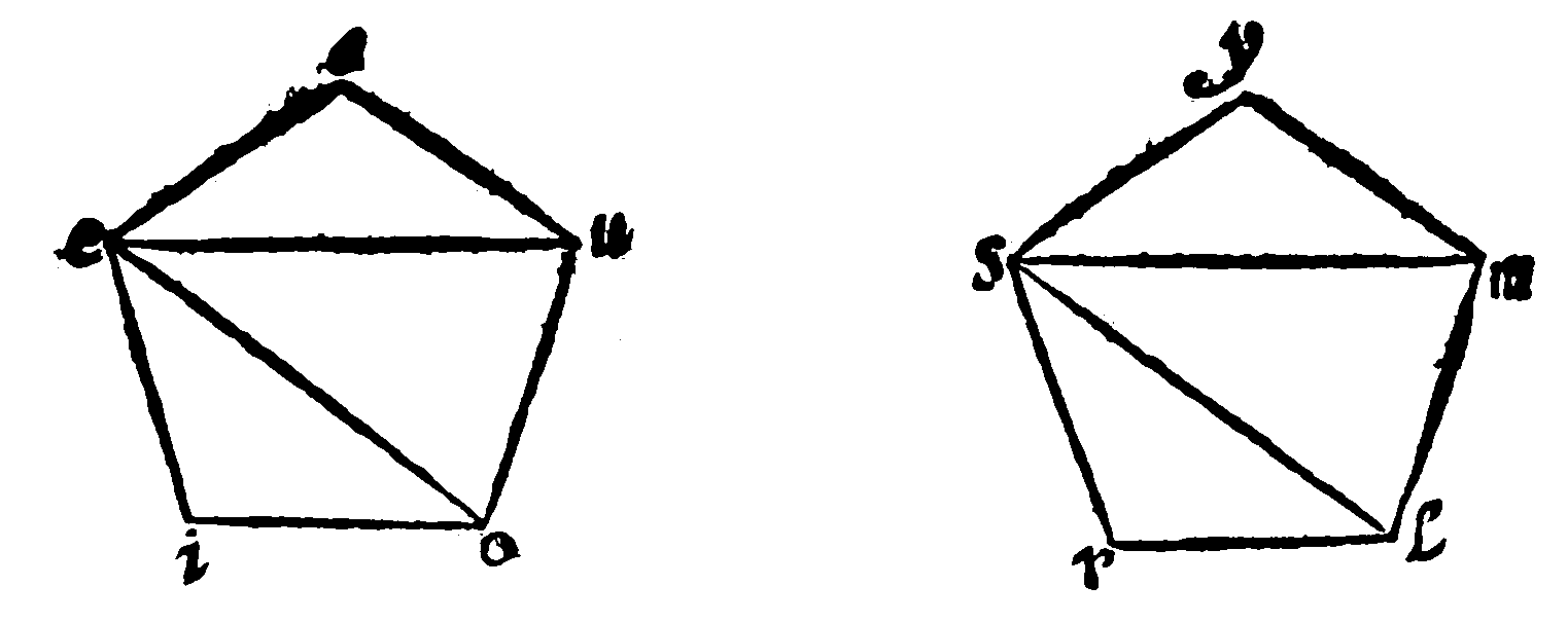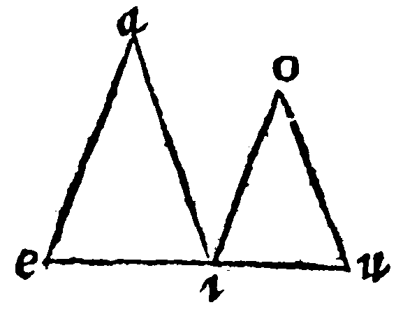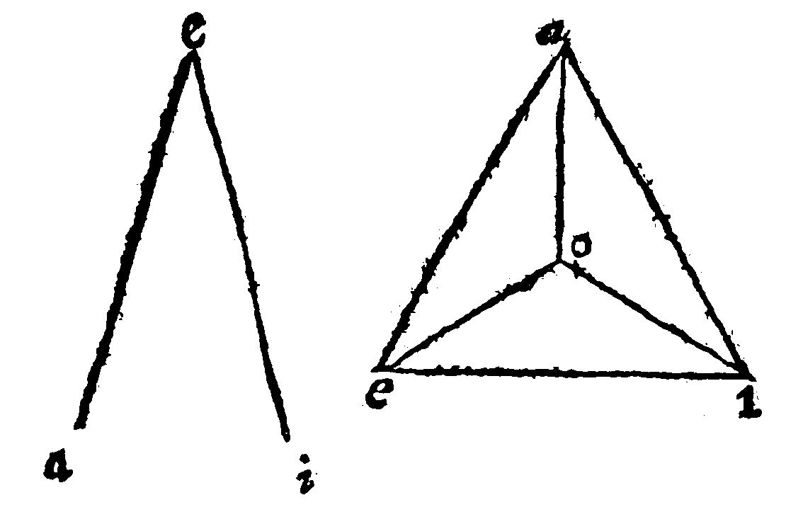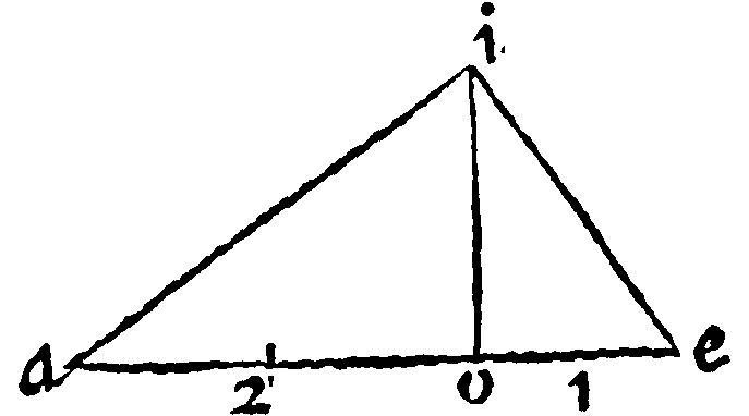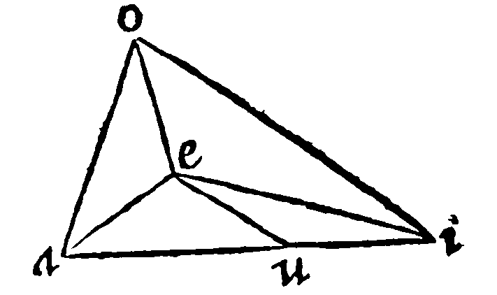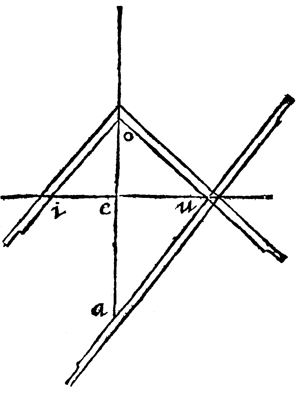As it will plainely appeare, if all of them be gathered into one, thus. For ai, the side of the Tetrahedrum, subtendeth a greater periphery than ao, the side of the Octahedrum; And ao, a greater than ie, the side of the Cube; because it subtendeth but the halfe: And ie, greater than ue, the side of the Icosahedrum: And ue, greater than ye, the side of Dodecahedrum.