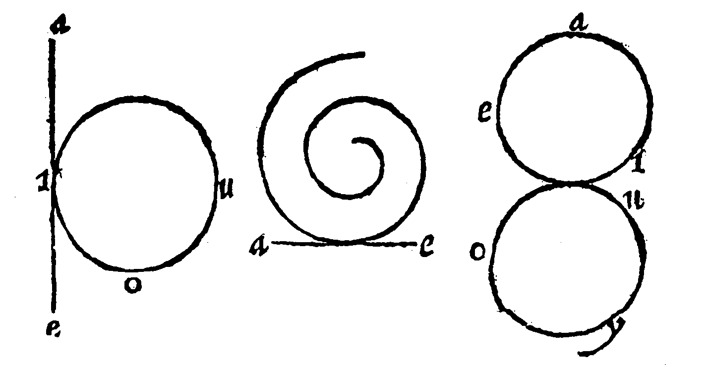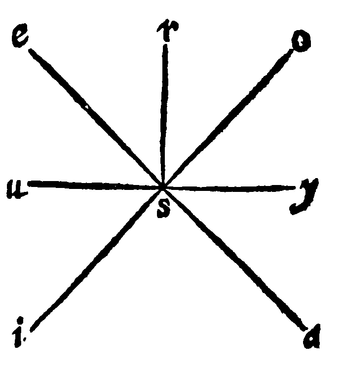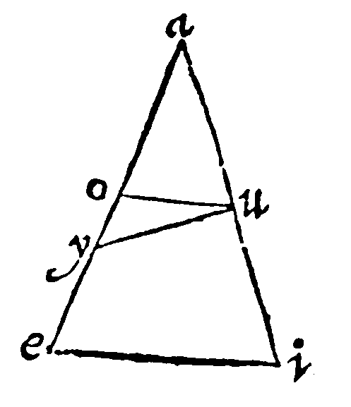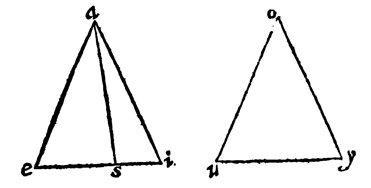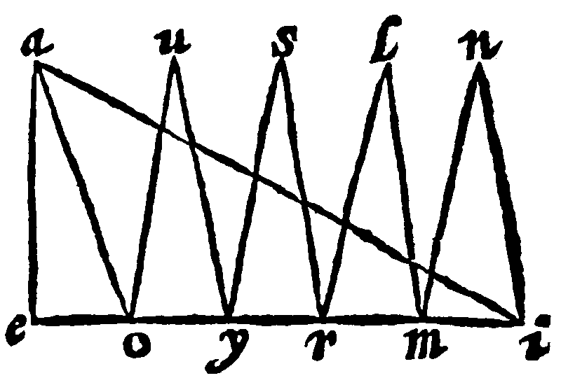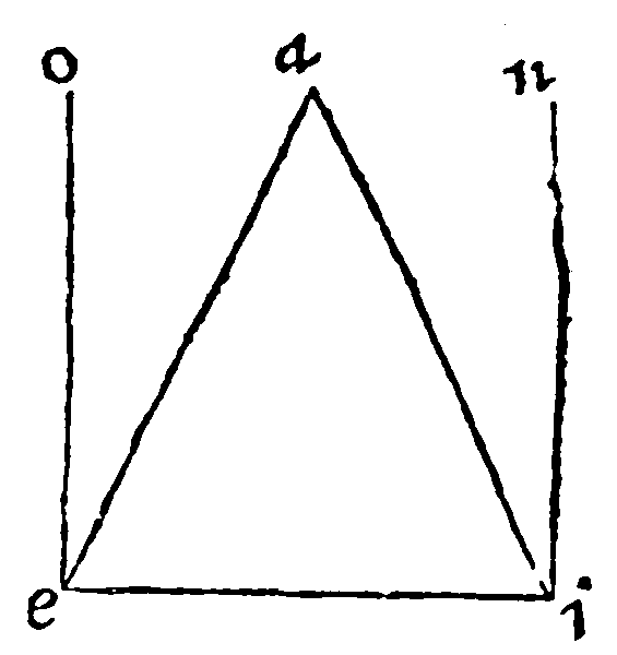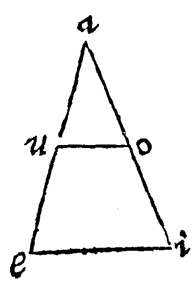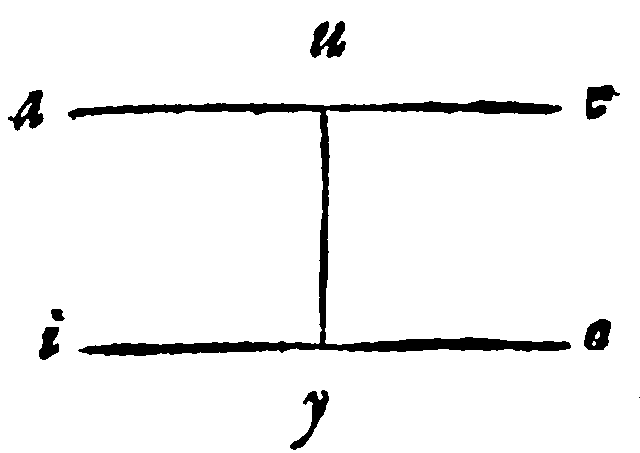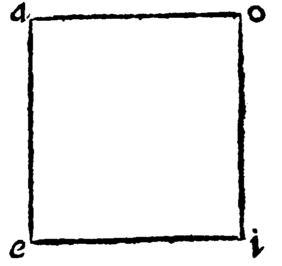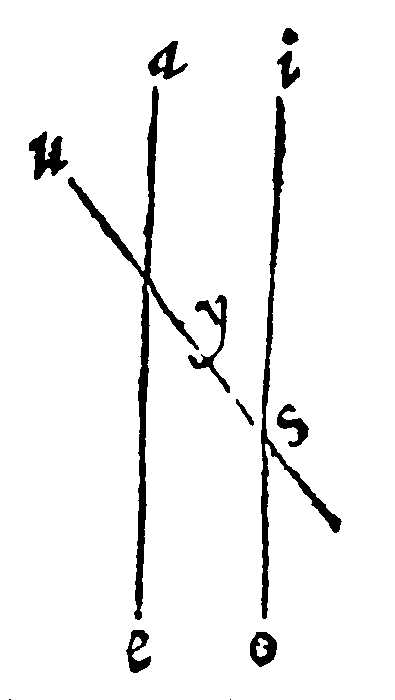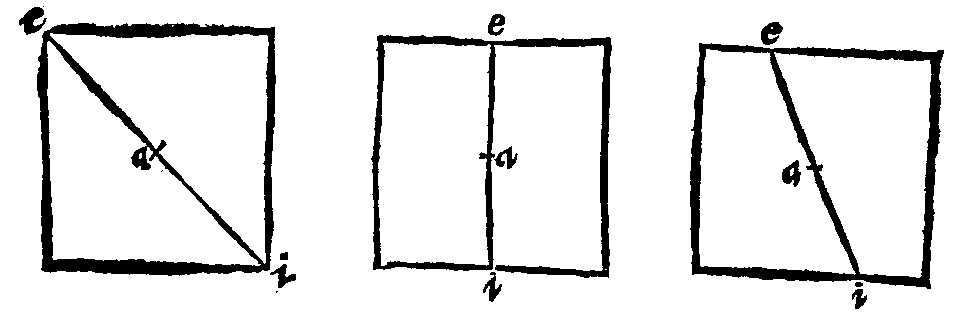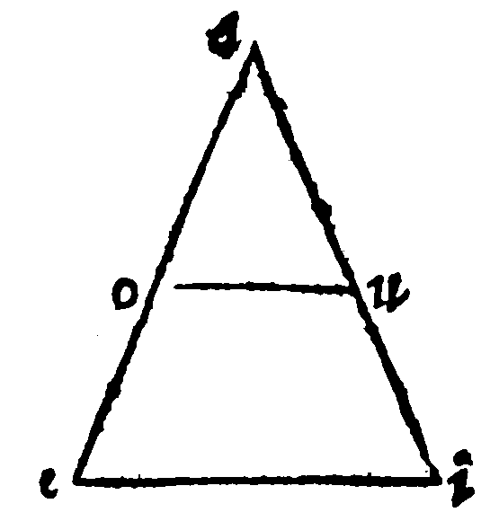 As it will plainely appeare, if all of them be gathered into one, thus. For ai, the side of the Tetrahedrum, subtendeth a greater periphery than ao, the side of the Octahedrum; And ao, a greater than ie, the side of the Cube; because it subtendeth but the halfe: And ie, greater than ue, the side of the Icosahedrum: And ue, greater than ye, the side of Dodecahedrum.