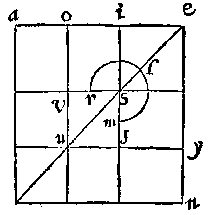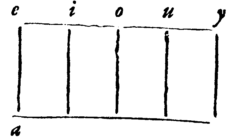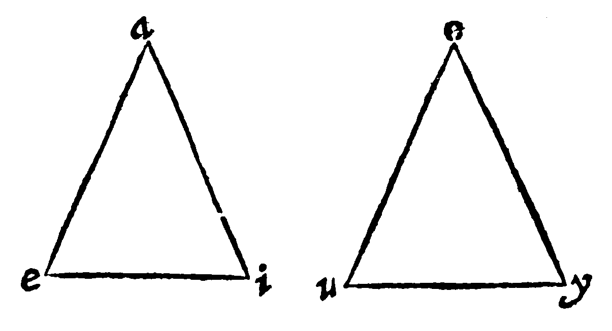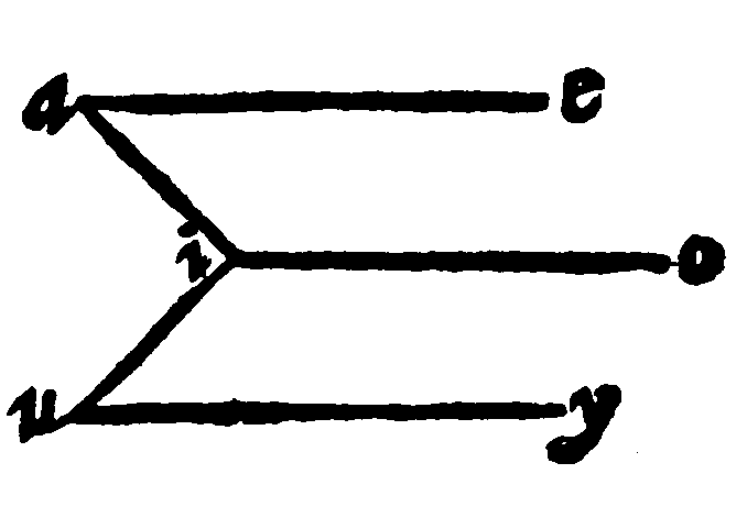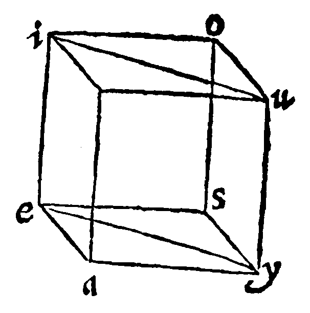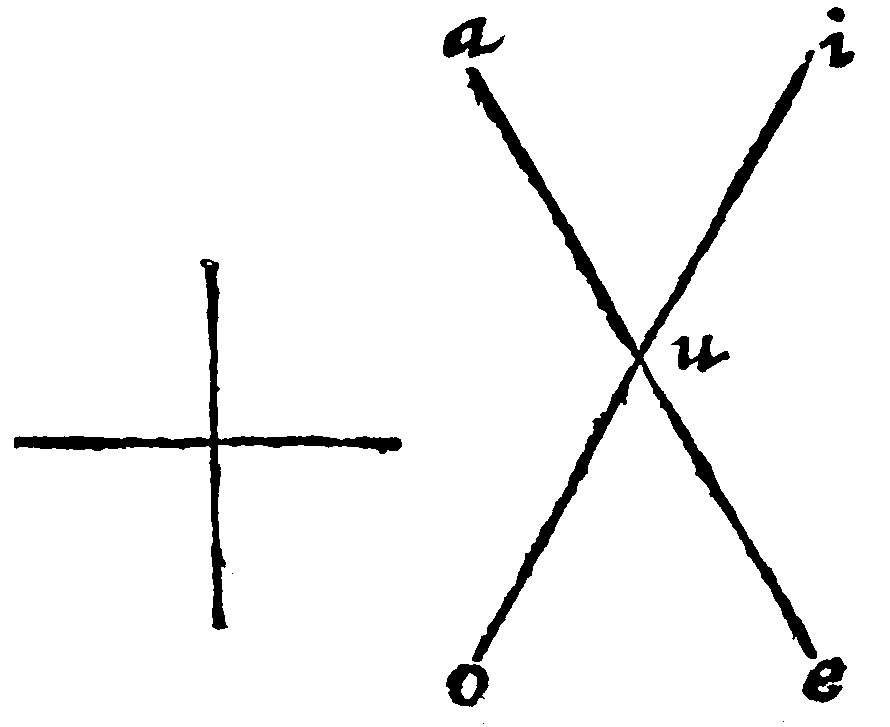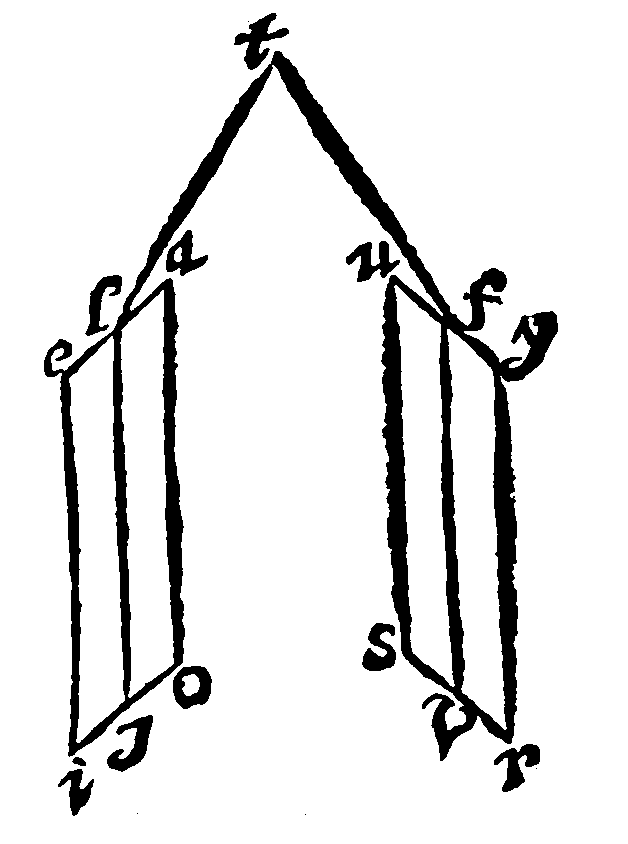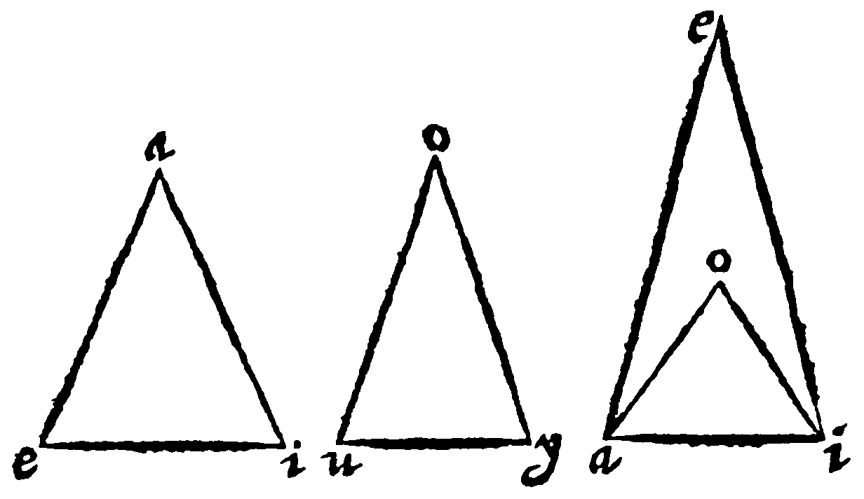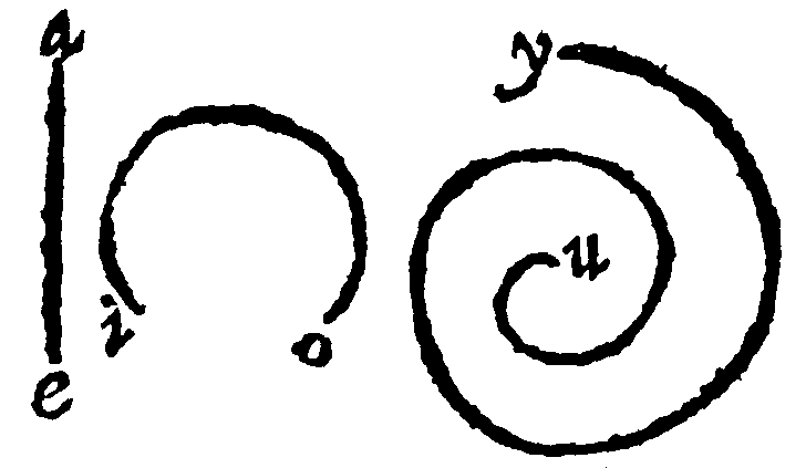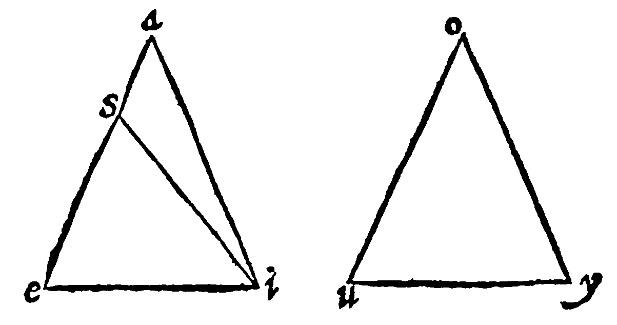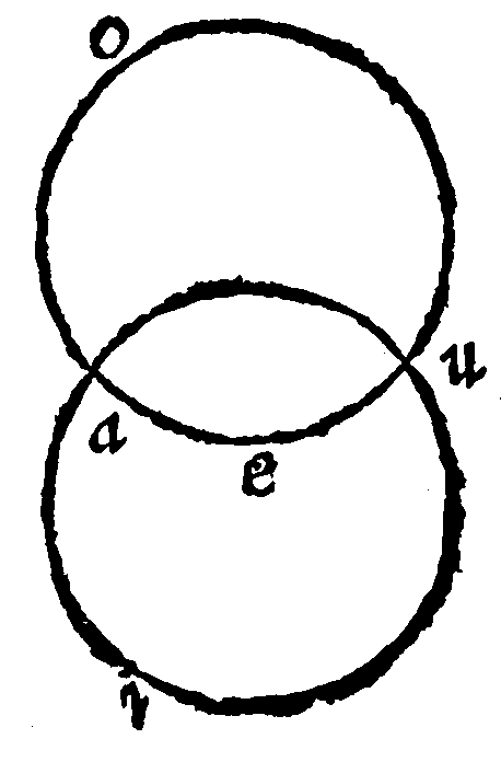 As it will plainely appeare, if all of them be gathered into one, thus. For ai, the side of the Tetrahedrum, subtendeth a greater periphery than ao, the side of the Octahedrum; And ao, a greater than ie, the side of the Cube; because it subtendeth but the halfe: And ie, greater than ue, the side of the Icosahedrum: And ue, greater than ye, the side of Dodecahedrum.