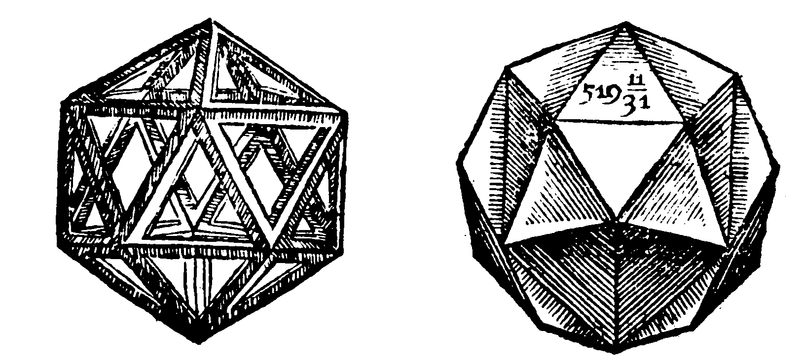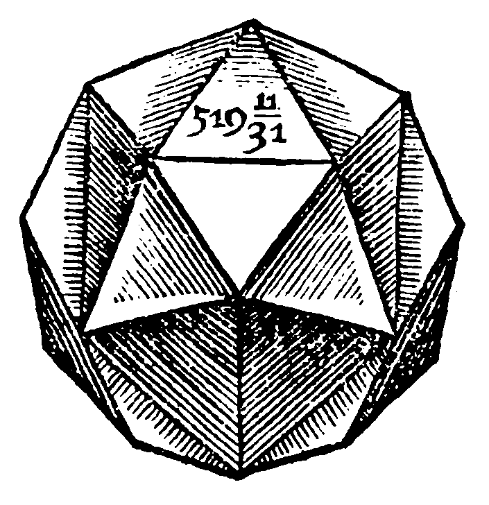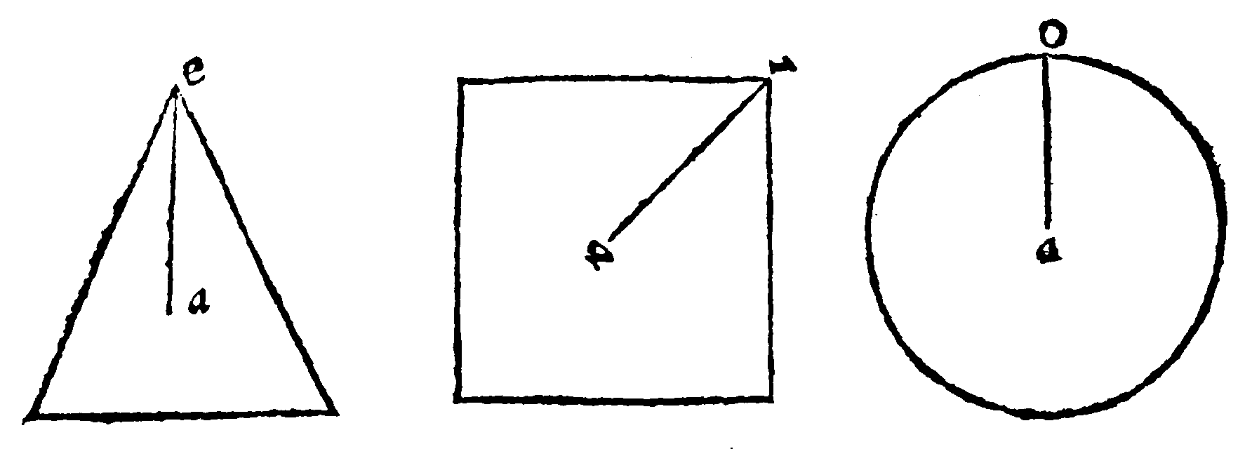 15 Of the five ordinate bodies inscribed into the same spheare, the tetrahedrum in respect of the greatnesse of his side is first, the Octahedrum, the second; the Cube, the third; the Icosahedrum, the fourth; and the Dodecahedrum, the fifth.