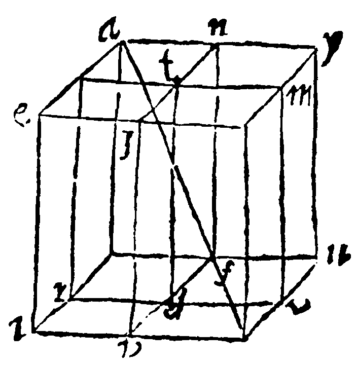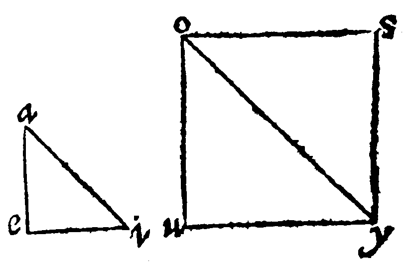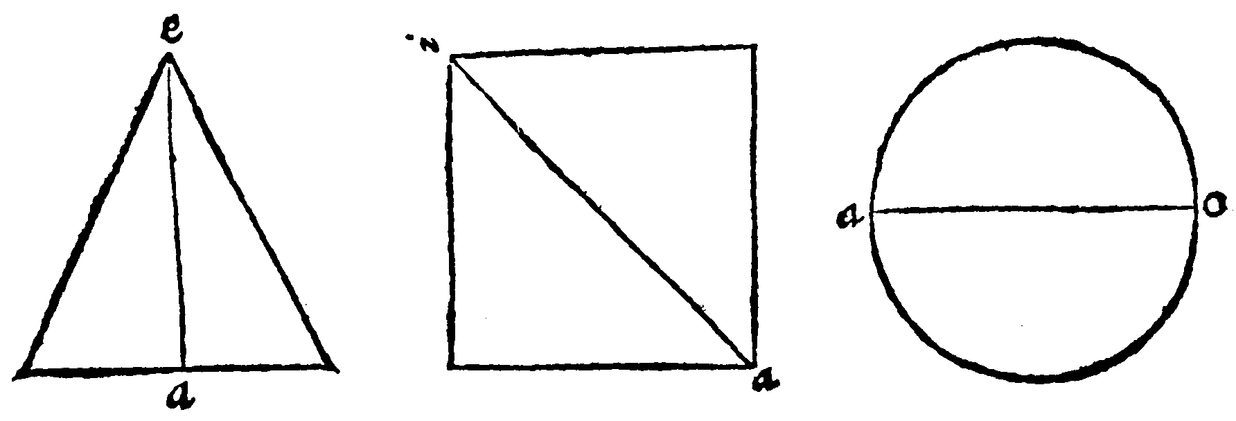 This is the fifth example of irrationality and incommensurability. The first was of the diagony and side of a quadrate or square. The second was of a line proportionally cut and his segments: The third is of the diameter of a Circle and the side of an inscribed quinquangle. The fourth was of the diagony and side of an icosahedrum. The fifth now is of the diagony and side of a dodecahedrum.
