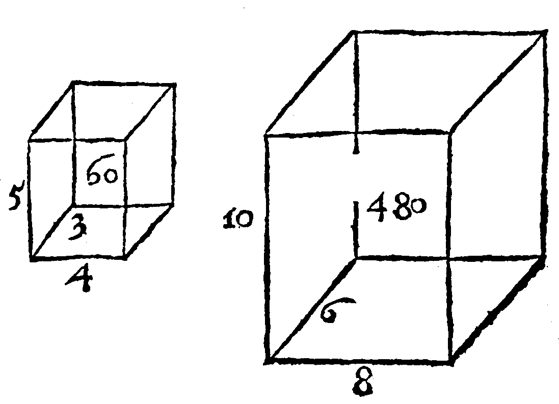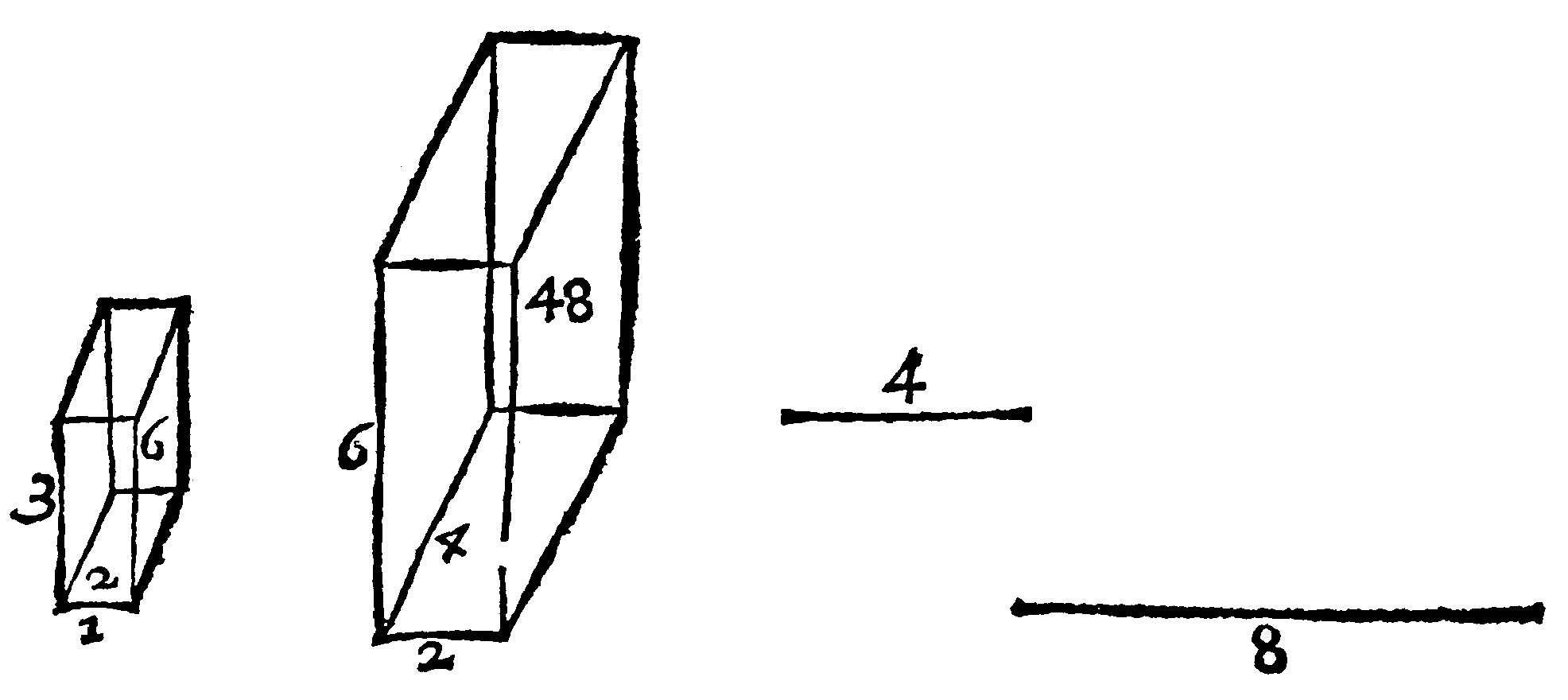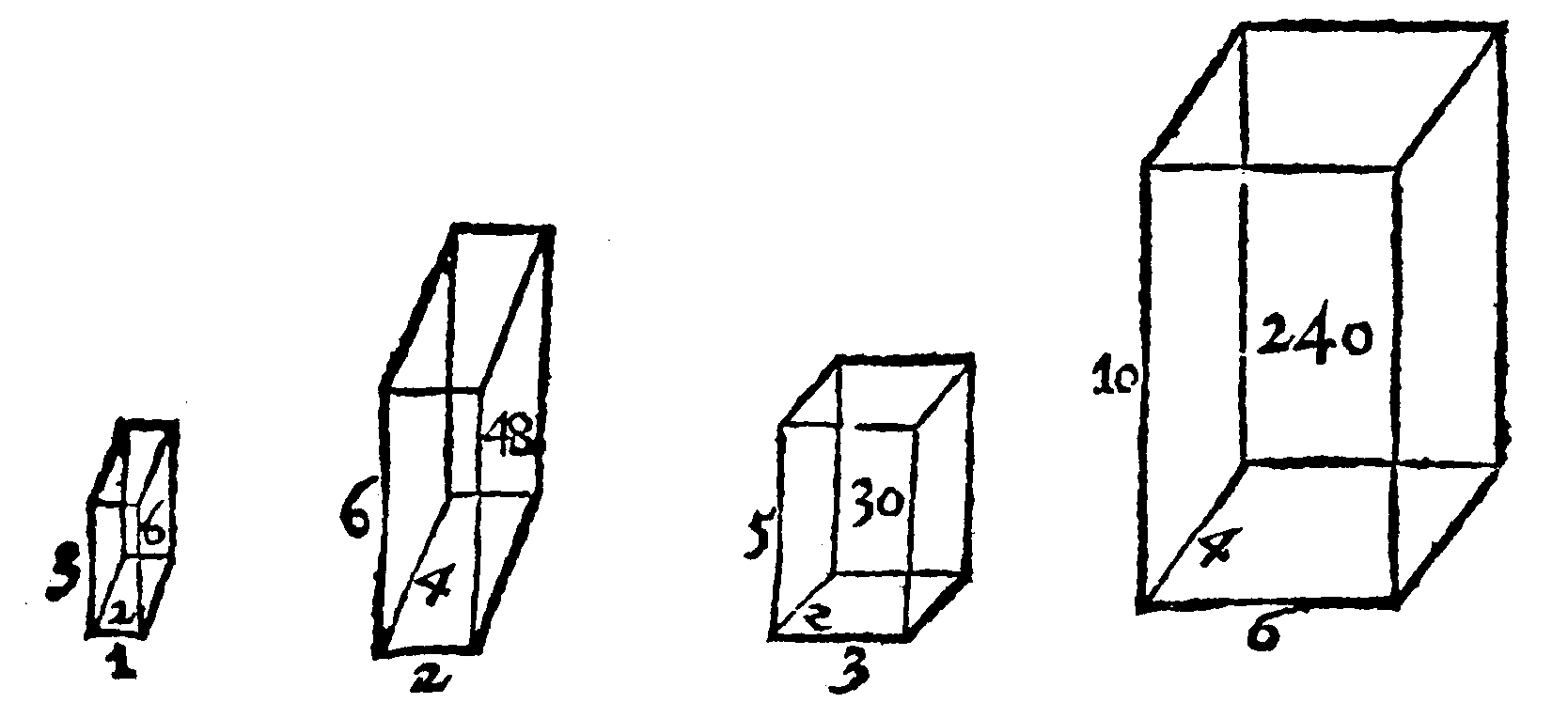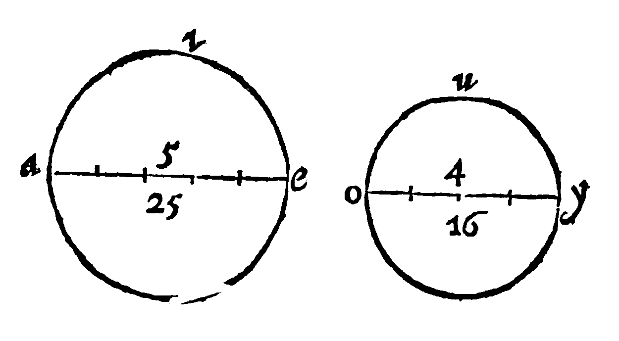 Sackes in which they carry corne, are for the most part of [297]a cylinderlike forme. If an husbandman therefore shall lend unto his neighbour a sacke full or corne, and the base of the sacke be 4 foote over. And the neighbour afterward for that one sacke, shall pay him 4 sacke fulls, every sacke being as long as that was, yet but one foote over in the diameter, he may be thought peradventure to have repayed that which he borrowed in equall measure, to wit in heighth and base. But it shall be indeed farre otherwise: For there is a great difference betweene the quadrate of the foure severall diameters, 1. 1. 1. 1. that is 4: and 16, the quadrate of 4, the diameter of that sacke by which it was lent. For Circles are one unto another as the quadrates of their diameters are one to another, by the 2 e xv. Therefore he payd him but one fourth part of that which he borrowed of him.
